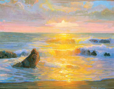Peter Adams’ painting “Autumn Sunset; Crystal Cove, California” was one of four works by Adams featured in the Masters of the American West Exhibition and Sale at the Autry National Center’s Museum of the American West from February 4 through March 5, 2006. The highly anticipated “invitational” exhibition attracted fine art collectors from around the country eager to experience the American West as interpreted by 70 renowned contemporary artists representing more than 200 paintings and sculptures.
