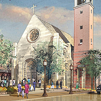 The new design for the USC Caruso Catholic Community Center includes a European limestone church that will seat up to 350.