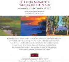 American Legacy Fine Arts is honored to present Fleeting Moments: Works en Plein Air, a group exhibition that takes an extraordinary look at this contemporary painting movement. With more than 40 new works created by 26 artists, the exhibition focuses on continuing the evolution and growing appreciation of painting outdoors to capture the ephemeral qualities of natural light.