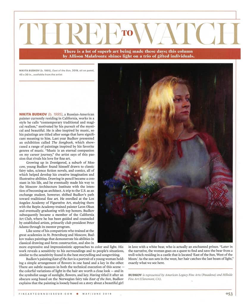 Nikita Budkov – Fine Art Connoisseur Magazine, may/June 2019 Post navigation Previous: Nikita Budkov Featured as “Three to Watch” in Fine Art Connoisseur Magazine May/June 2019
