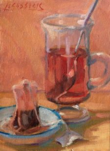 Jean LeGassick – Tea Break, Oil on canvas panel 7″ x 5″
