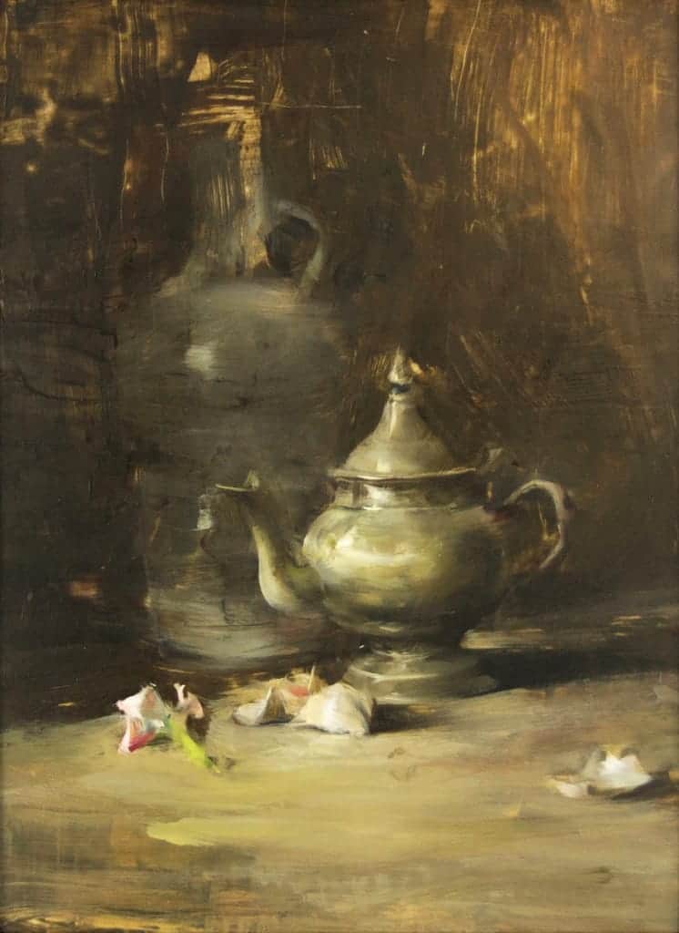 Quang Ho – Still Life Arrangement with Pewter, Oil on panel ” x 9″