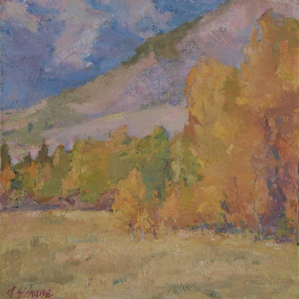 Amy Sidrane – Autumn Above The Big Wood River; Ketchum, Idaho, Oil on canvas panel 8″ x 8″ Post navigation Previous: Autumn above Big Wood River; Ketchum, Idaho