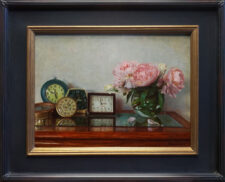 Alex Tabet – Clocks and Peonies, Oil on panel 12″ x 16″