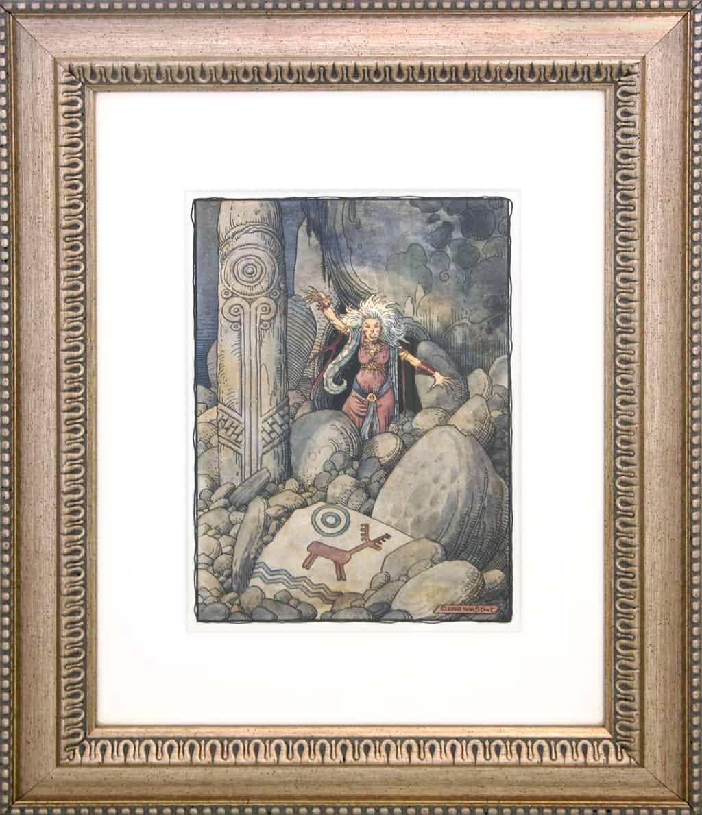 (FRAMED) William Stout – Erda, Ink and watercolor 10″ x 7″