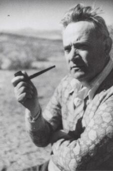 Also in 1922, Sayre retreated to the desert in Coachella Valley near Palm Springs where he stayed with his second cousin, Ben Laflin, for two years. Laflin owned a date ranch, and it was here that Sayre rested and began to regain his health while at the same time he became further inspired by the artistic moods of the desert. In 1926, Sayre met and married a local girl, Ruth Barker. Ruth came from pioneer stock whose family started a date ranch in the Coachella Valley in 1905. In an interview with the Sayres’ daughter, Barbara Sayre Harmon (b. 1927), she described family visits to the Coachella Valley which took place from 1927 to 1939, until she was eleven years old when her father passed away. They stayed at the Barker Ranch, at the time run by Ruth’s brothers Bob and Frank, in a cabin the Sayres named The Paint Shack. Fred Grayson Sayre would go out daily with his friend, Laguna artist Theodore Jackman, to explore the Orocopias and the Salton Sea.