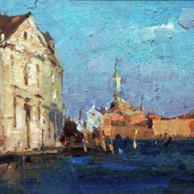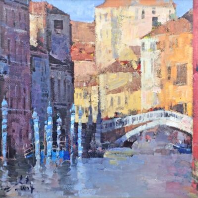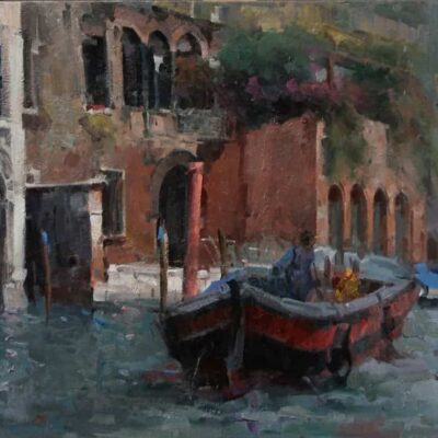 The delight is in the details in Jove Wang’s paintings. For example, compare two at his plein airs from his travels in Italy: “Morning in Venice” shows a boat moored …