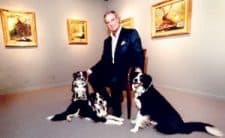 Peter and Elaine on a plein air painting excursion to Mt. Wilson with their dogs, from left to right, Panda, Jaipur and Smoochie.
