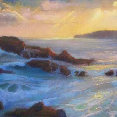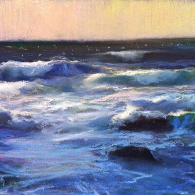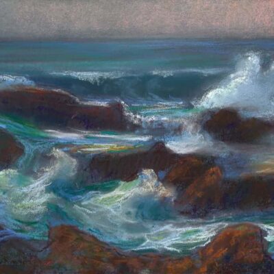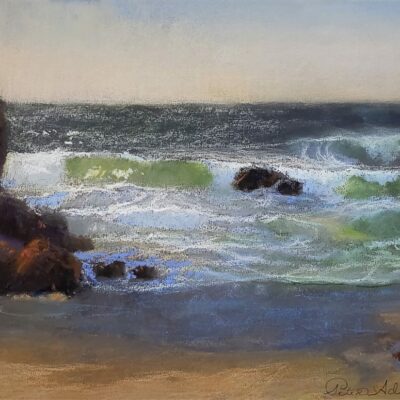 Peter Adams demonstrates painting waves in pastel en plein air in Dana Point, California for American Artist magazine.
