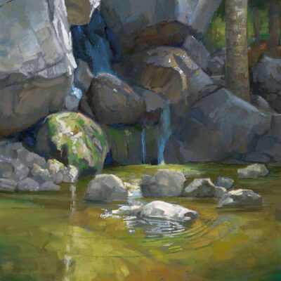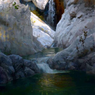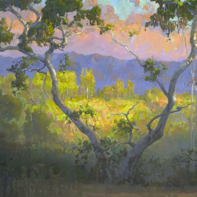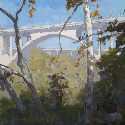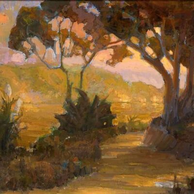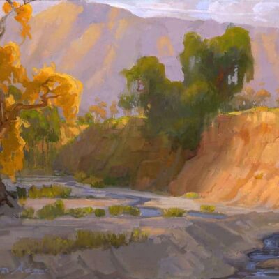 “Painting en plein air, California Art Club leaders Dan Pinkham and Peter Adams explore the remaining pristine realms of the western environment, using impressionist techniques to capture these ephemeral spaces.”
