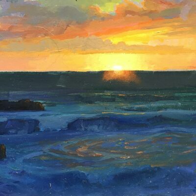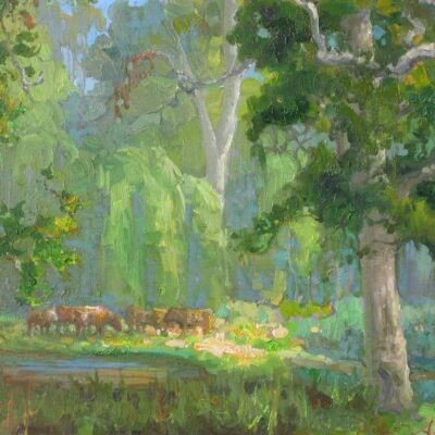 “Although I generally complete 90% of my plein air landscape paintings on location, it’s the last 10% that I do at my studio easel that I feel is my personal interpretation as an artist. The quiet time that I spend in my studio allows me the opportunity to contemplate the poetic essence of a subject. My object is not to focus on every detail of a scene, but to capture its spirit.”