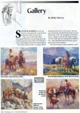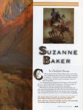 The 30 years Suzanne Baker has spent on horseback, living and working with her husband and children on ranches in California and Nevada and as a horse packer and guide in the High Sierra of California, have given her a solid understanding of horses and firsthand knowledge of ranch life. She uses the wealth of information drawn from these experiences, along with her avid love of photography, to document the many places, people, and circumstances of ranch life she has experienced. Her formative years were spent growing up among ranchers, adventurers, and artists in the steep, rugged country of the foothills outside Sequoia National Park in California. The community attracted a number of artists and they, in addition to her very talented mother and numerous college art courses, played a big part in her art education and love of art. Baker’s work has appeared in galleries that have represented her work, and in Art of the West, Cowboys & Indians, RANGE, Rocky Mountain Rider, Southwest Art, and Western Horseman magazines and the books Art of the American West, An Encyclopedia of Women Artists of the West, and Western Tradition. She has participated in exhibitions at the Briscoe Western Art Museum (Night of the Artists), the Cowgirl Hall of Fame, the Desert Caballeros Western Museum (the first Cowgirls Up!), and many more.
