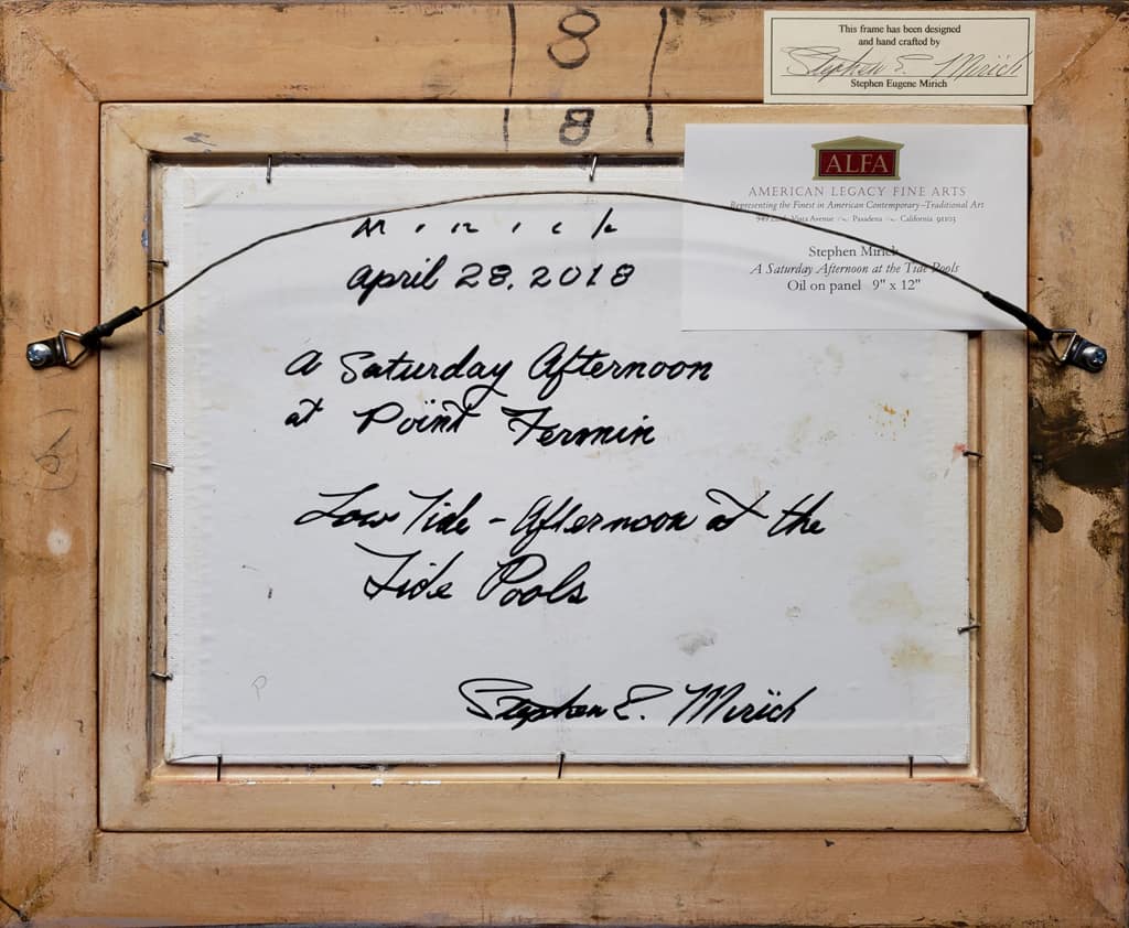Stephen Mirich Available Work Archives Biography Press and Publications Commissions Stephen MirichA Saturday Afternoon at the Tide PoolsOil on panel9" x 12", artwork13.75" x 16.75" x 1.25", framedContemporary$1,400 In stock A Saturday Afternoon at the Tide Pools quantity Purchase Now Request More Information Provenance Acquired by American Legacy Fine Arts directly from the artist Exhibited A Collector's Feast, American Legacy Fine Arts, November 16 – December 15, 2018 Need help? Call our ALFA specialists +1 626.577.7733 Additional Available Artwork by Stephen Mirich