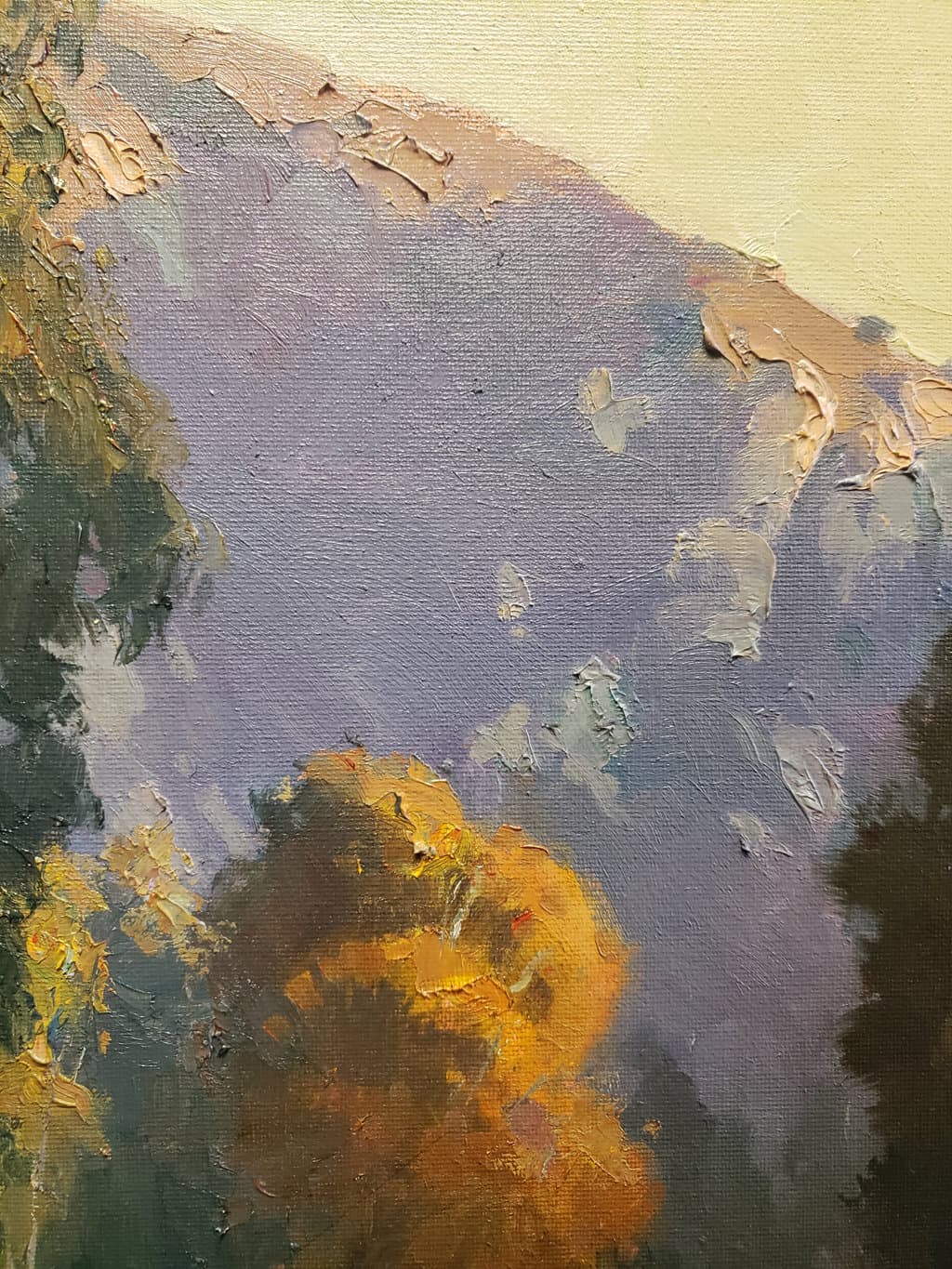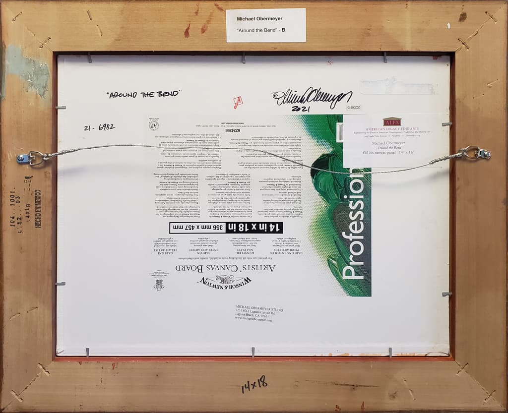 "This is a view that is very familiar to me. I see this as I drive home from my studio in the late afternoons and evenings, the fading light on the walls of Laguna Canyon at the Big Bend, framed by all of the trees. I found just the right spot and painted this en plein air, working quickly to capture that fleeting moment when everything was lit just right."