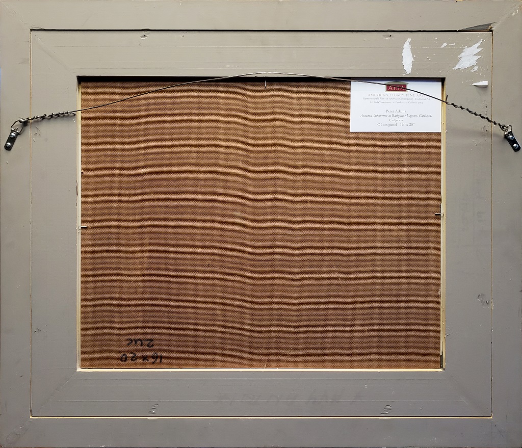 Peter Adams Available Work Archives Biography Press and Publications Commissions Art Reviews Studio Visit Peter AdamsAutumn Silhouettes at Batiquitos Lagoon, Carlsbad, CaliforniaOil on panel16" x 20", artworkContemporaryNot AvailableRequest More Information Provenance Acquired by American Legacy Fine Arts directly from the artist Exhibited "Masters of the American West" - Autry Museum of the American West, Los Angeles, February 9–March 24, 2019 Need help? Call our ALFA specialists +1 626.577.7733 Available Artwork by Peter Adams