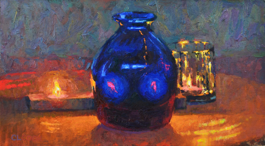 "Here I wish to evoke feelings of the night sky, in this quiet still life. A moment experienced fully, reveals an eternity hidden in plain sight. Simply be present, to see past the surface of people and things, and find freedom illuminated by the spirit within you."