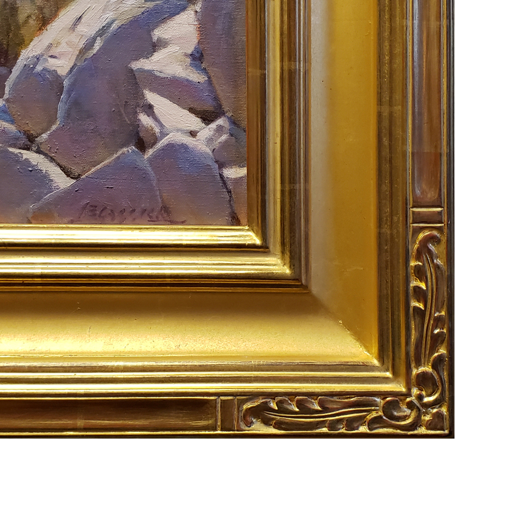 "The mountains are my sanctuary, and nowhere is as cherished to me as the Sierra Nevada Range in California. Taking many mule packing trips to the mid-range section, the High Sierra, I was at first drawn to the most obviously dramatic spires and peaks. Now, however, I appreciate the less spectacular but often just as dramatic nooks and crannies of the area. These scenes are not as easy to find and often require a lot of arduous boulder hopping, which thus inspired my title for this piece."