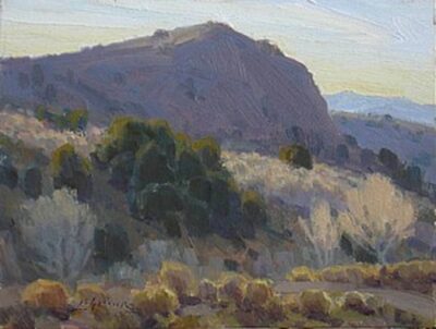 Painted en plein air in the Carson River Canyon, near where Brunswick Canyon meets the river in Carson City, Nevada. LeGassick’s painting shows immediate brushstrokes, reminiscent of the works of Edgar Payne, and capture the rugged and tranquil feel of this western frontier land.