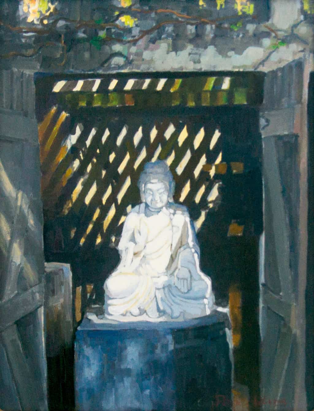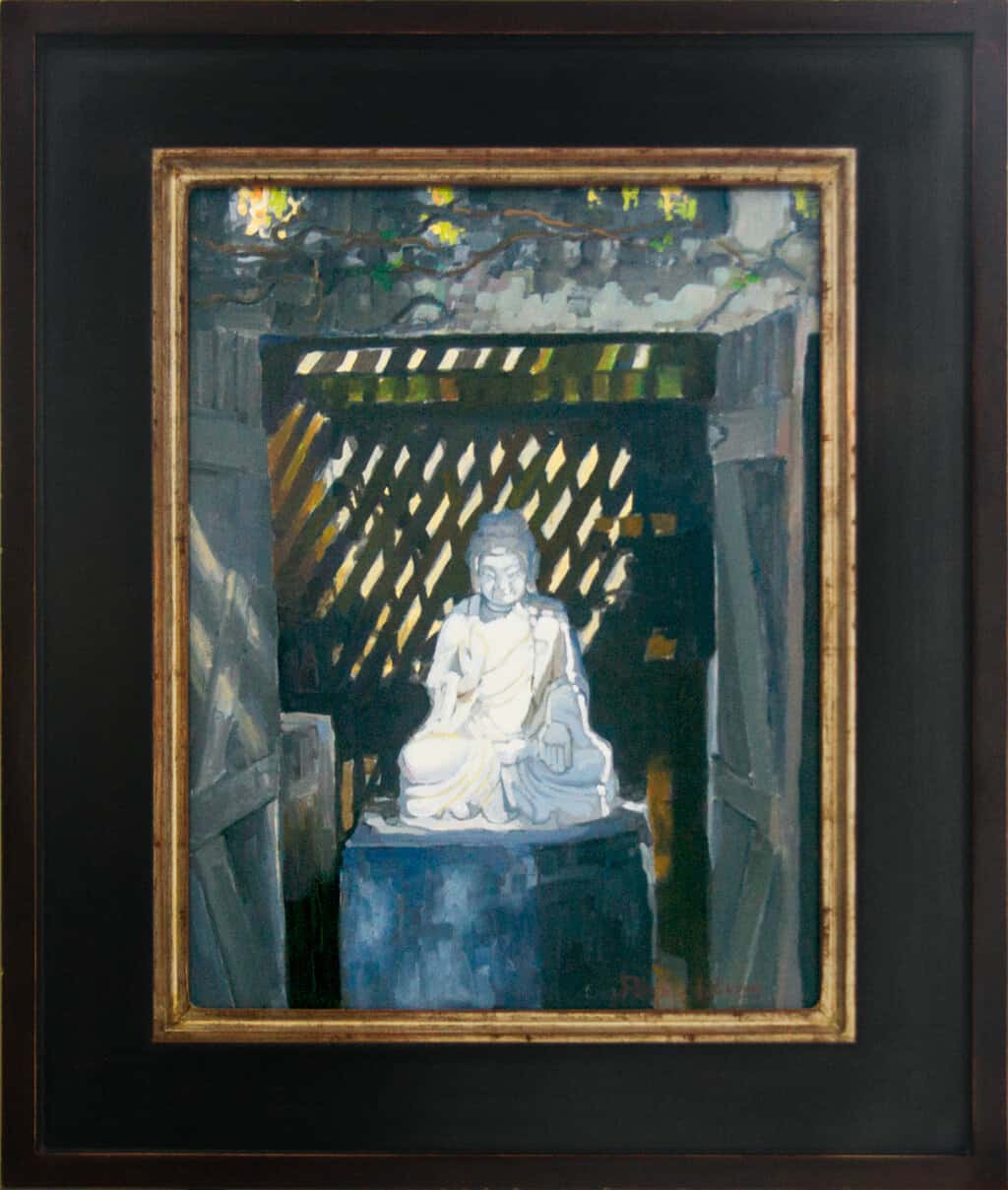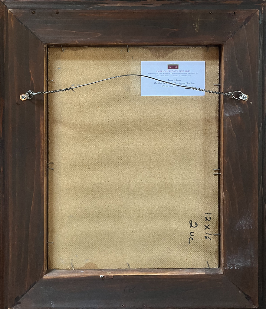 Peter Adams Available Work Archives Biography Press and Publications Commissions Art Reviews Studio Visit View in Room Sizing is approximate. See specs for exact dimensions. Twitter Email Peter AdamsBuddha Revealed; Huntington GardensOil on panel16" x 12", artwork22.5" x 17.75" x 1", framedContemporary$4,250 In stock Buddha Revealed; Huntington Gardens quantity Purchase Now Request More Information Acquired by American Legacy Fine Arts directly from the artist Exhibitions San Marino League's "Art Matters" at The Huntington Library, Arts Collections, May 2 - 4, 2008. Need help? Call our ALFA specialists +1 626.577.7733 Additional Available Artwork by Peter Adams