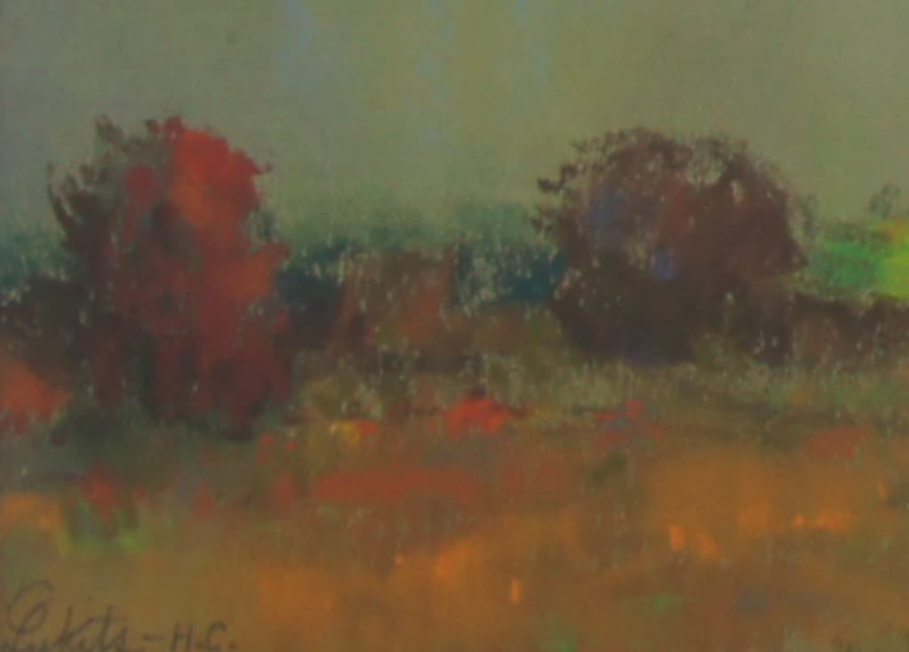 Signed “Lukits – H.C.” at the lower left, this evocative pastel captures the dramatic interplay of light and atmosphere over California’s varied terrain, as storm clouds sweep across the horizon. The “H.C.” inscription is the French abbreviation for Hors Concours, signifying that Lukits’ work was recognized as being above contest and therefore not eligible to compete for prizes — a distinction typically reserved for highly accomplished artists.