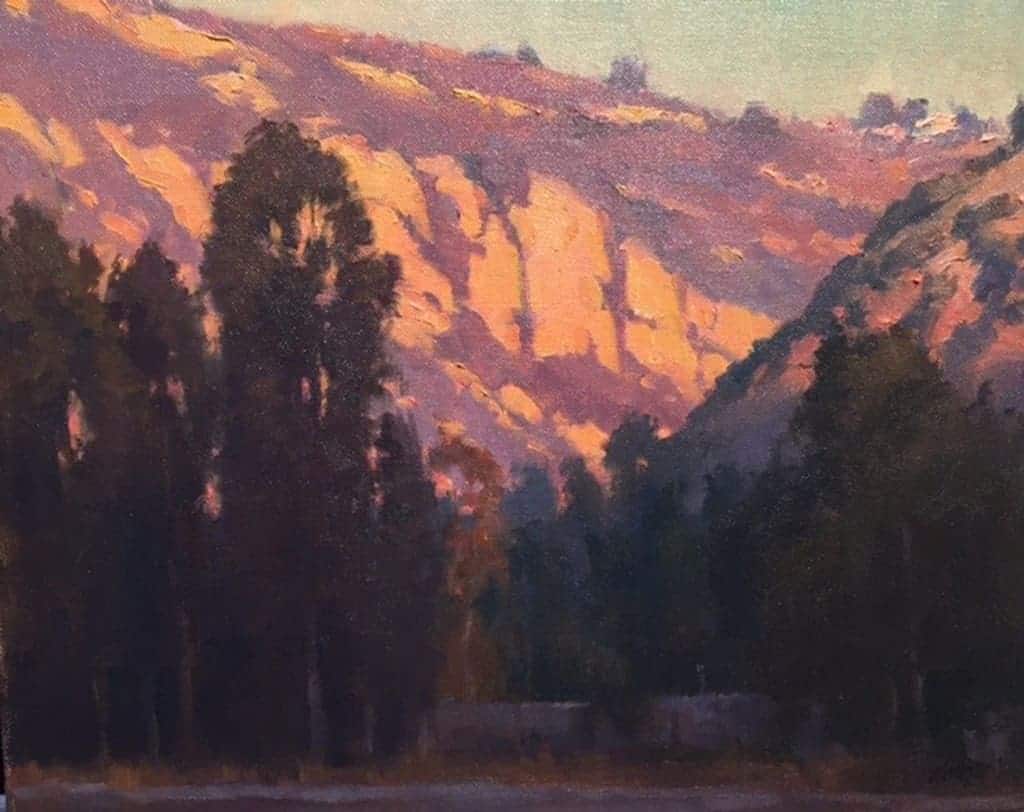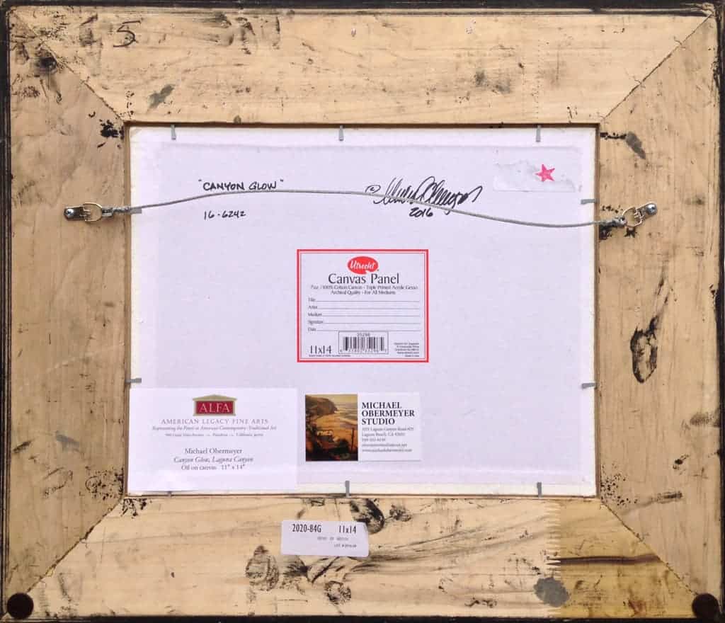 Artist Statement "This View of Laguna Canyon is a scene that is very familiar to me, as I make my way to my studio from downtown and the beach. The glorious evening light on the canyon walls reminds me of the early plein air paintings of Laguna Beach. In fact, not much has changed in the view of 'Canyon Acres,' except, perhaps, for a few nice homes along the top of the ridge."