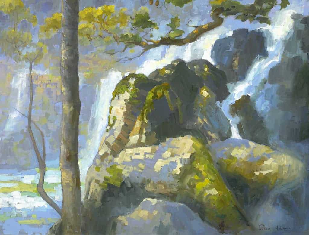 American Legacy Fine Arts presents "Chilnuhuana Falls' a painting by Peter Adams.