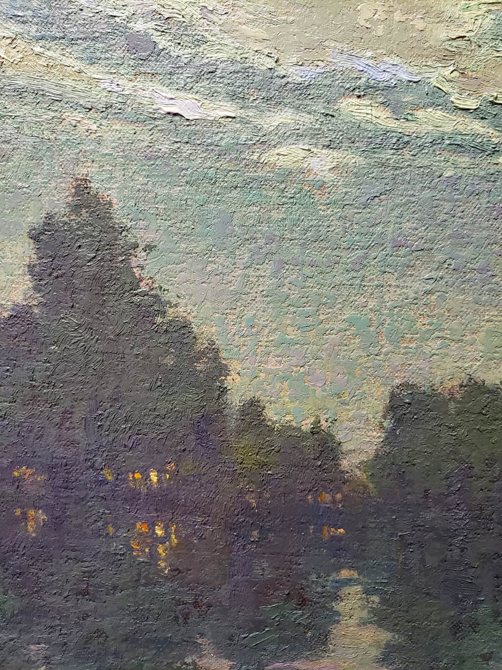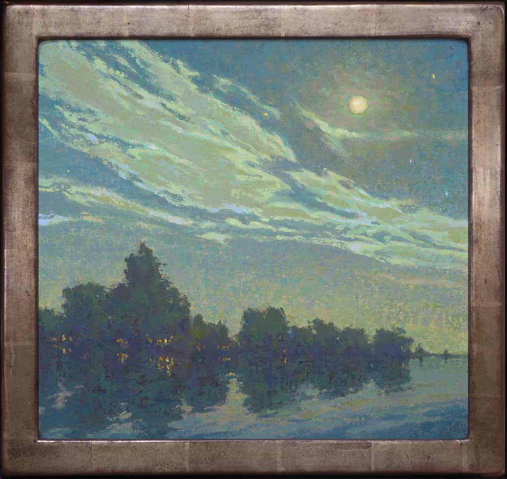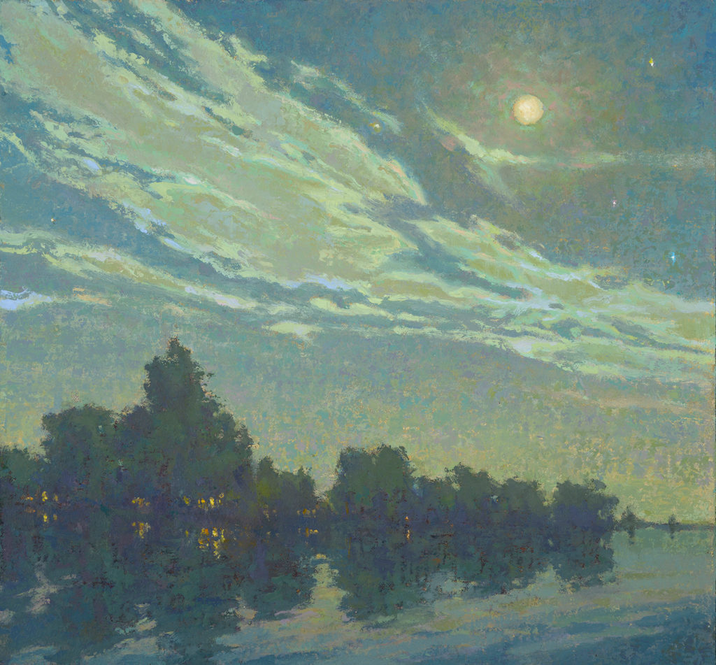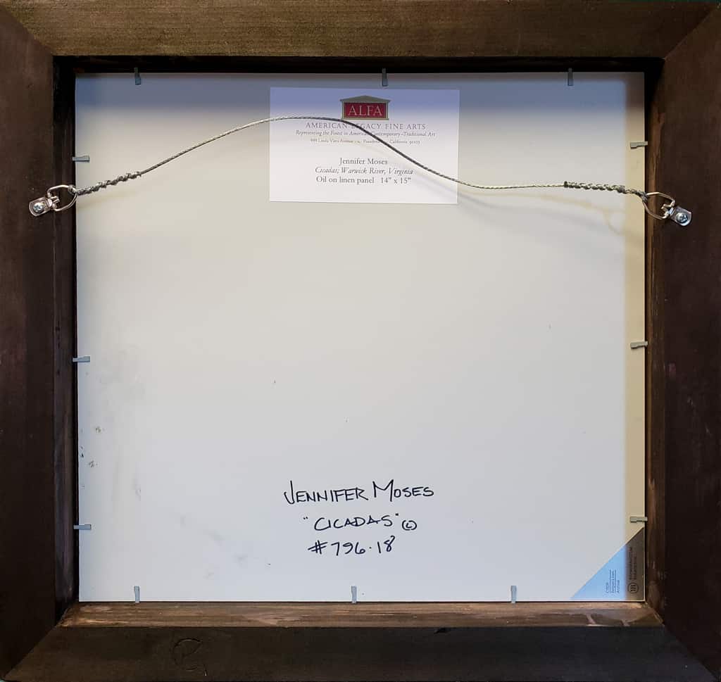 Jennifer Moses Available Work Archives Biography Press and Publications Commissions Jennifer MosesCicadas; Warwick River, VirginiaOil on linen panel14" x 15", artworkContemporaryNot AvailableOut of stock Request More Information Provenance Acquired by American Legacy Fine Arts directly from the artist Artist Statement "The Moon rises over the rippling tides and clouds catch flight as the song of cicadas fill the air." — Jennifer Moses Exhibited A Collector's Feast, American Legacy Fine Arts, November 16 – December 15, 2018 Need help? Call our ALFA specialists +1 626.577.7733 Available Artwork by Jennifer Moses