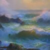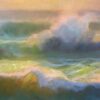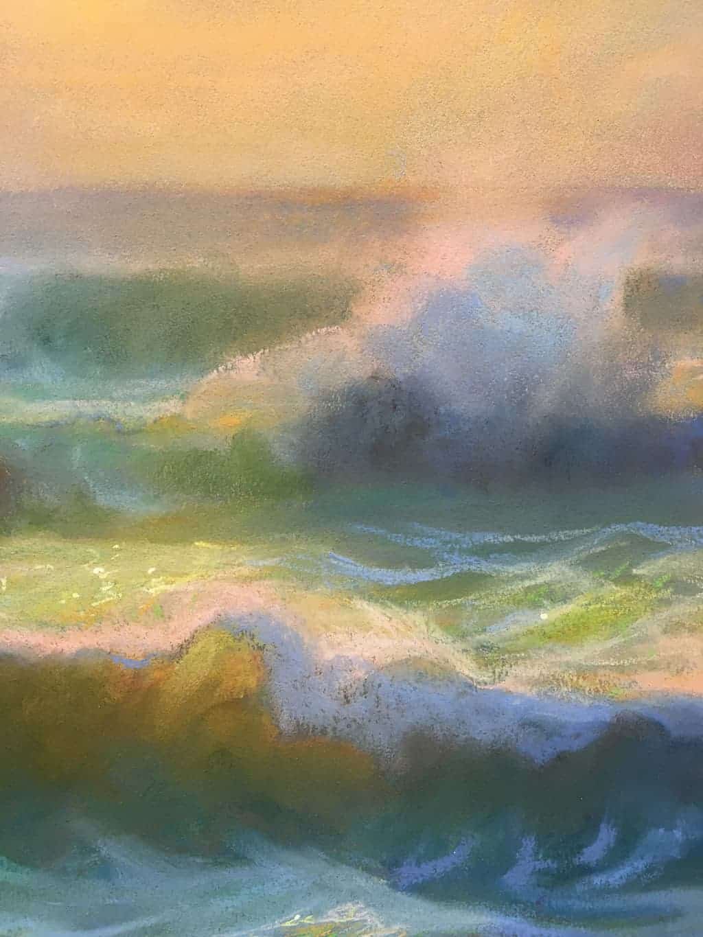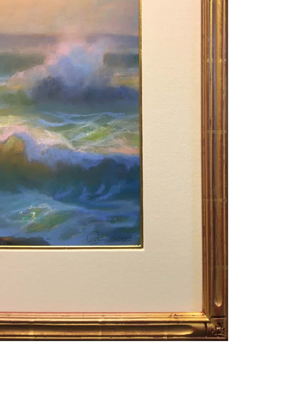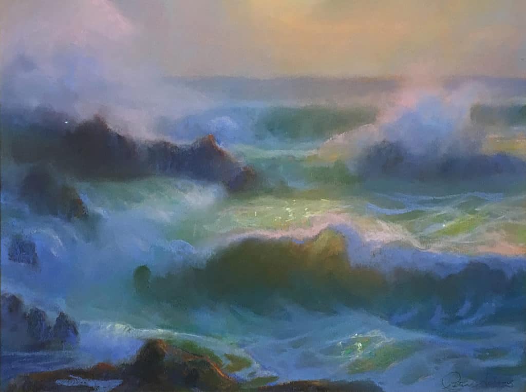 Peter Adams created this pastel painting en plein air at Leo Carrillo Beach in Malibu. The title, "Con Brio," is a musical term that describes a spirited and lively movement.