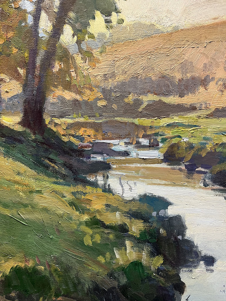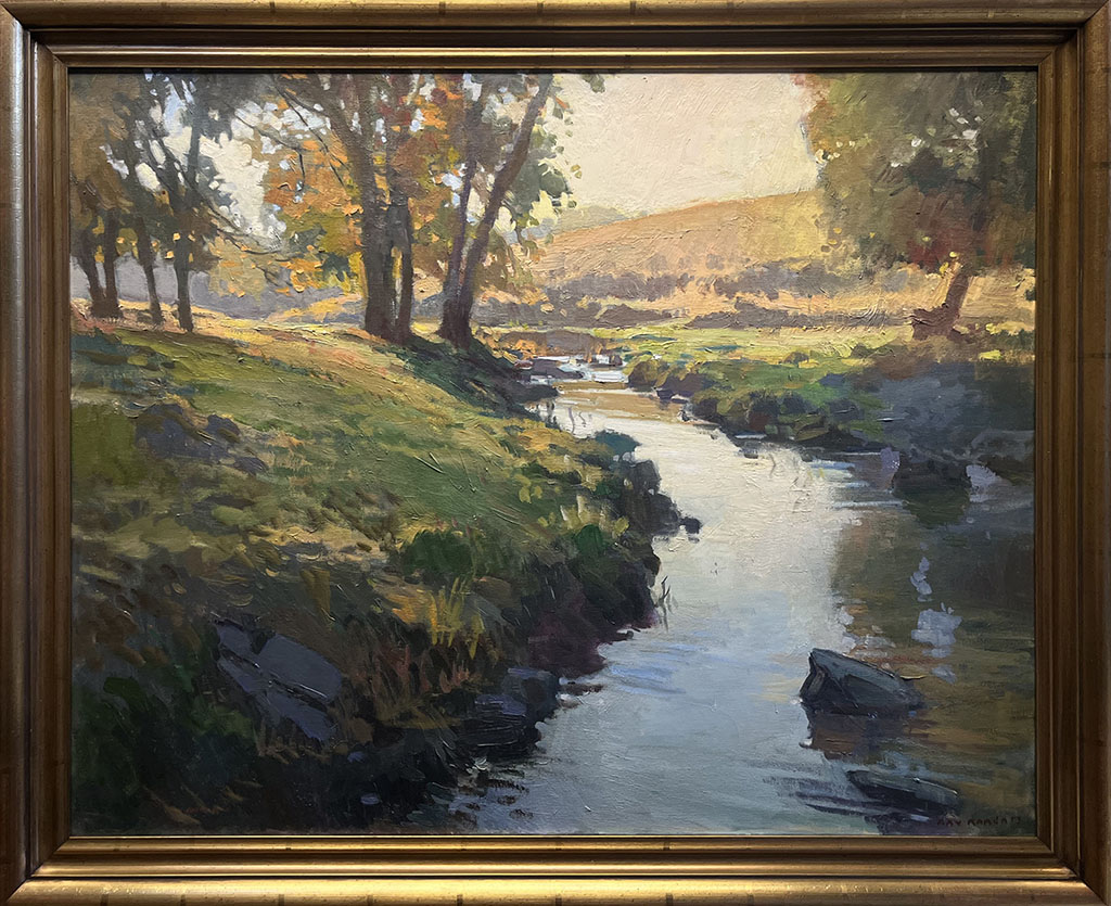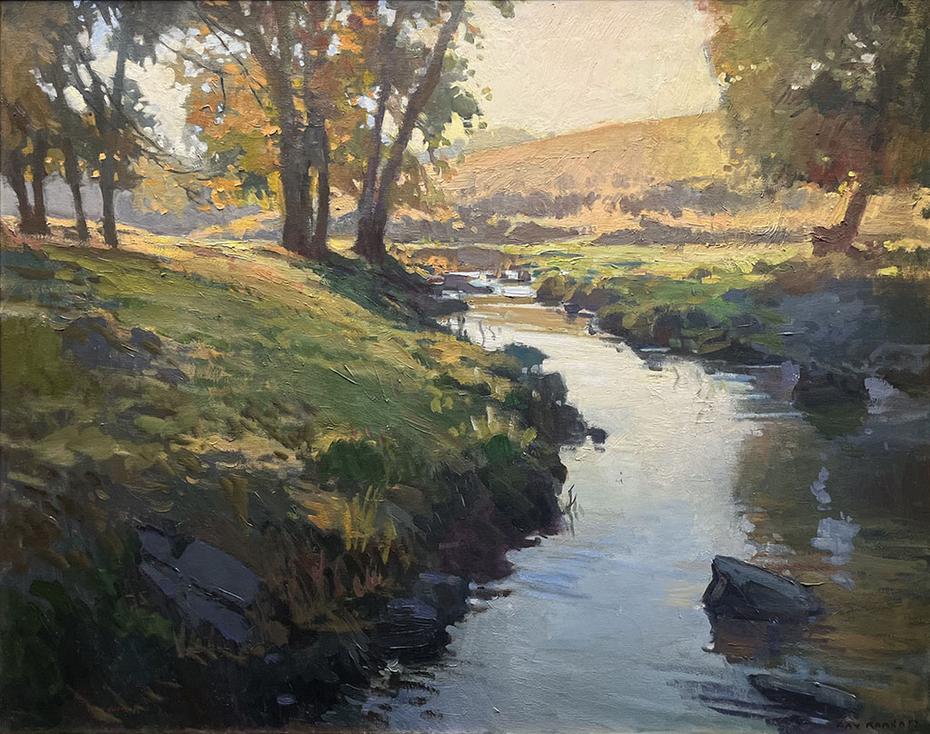 "This wonderful spot is on a ranch just outside Sonora, Ca, in the foothills of the Sierra. An early rain when the fall color is at it’s peak is always a time to ones easel ready to catch that moment before the leaves drop and the water more than trickle."