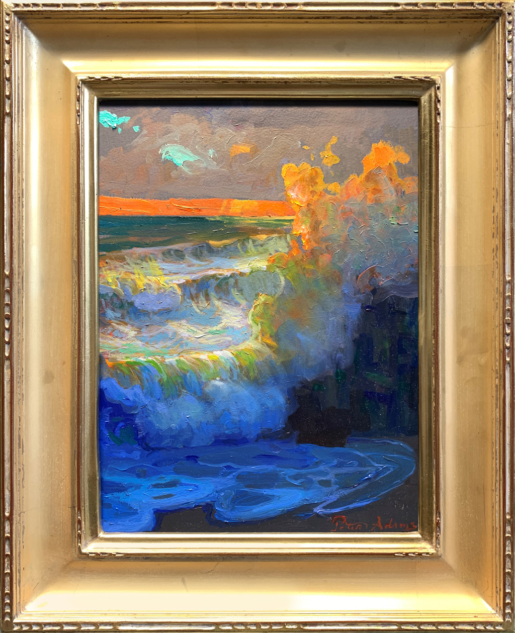 Peter Adams Available Work Archives Biography Press and Publications Commissions Art Reviews Studio Visit View in Room Sizing is approximate. See specs for exact dimensions. Twitter Email Peter AdamsEvening Splash; OceansideOil on panel12" x 9", artwork16.5" x 13.5" x 1.5", framedContemporaryNot AvailableRequest More Information Provenance Acquired by American Legacy Fine Arts directly from the artist Exhibited Spring into Art 2022, presented by the San Marino League at The Huntington Library, San Marino, California, March 25 - March 27, 2022 Need help? Call our ALFA specialists +1 626.577.7733 Available Artwork by Peter Adams