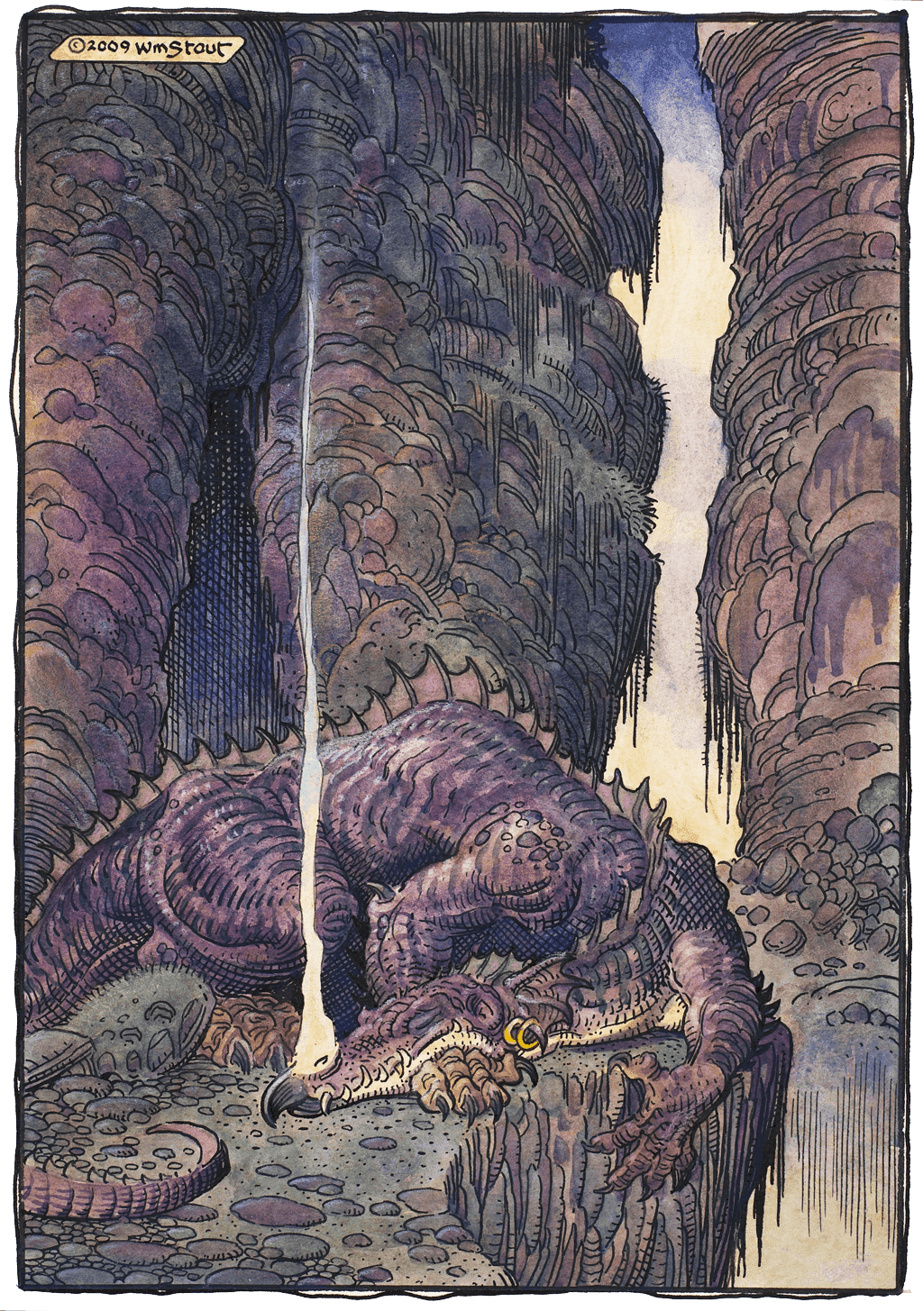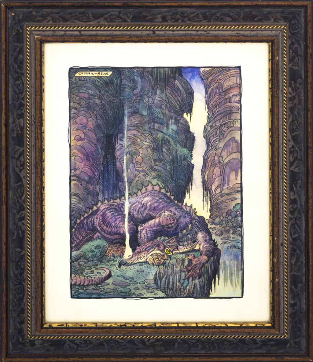 William Stout Available Work Archives Biography Press and Publications Commissions View in Room Sizing is approximate. See specs for exact dimensions. Twitter Email William StoutFafnir SleepsInk and watercolor on board10.5" x 7.25", artwork16.625" x 13.375", framedContemporary$2,500 In stock Fafnir Sleeps quantity Purchase Now Request More Information Provenance Acquired by American Legacy Fine Arts directly from the artist Exhibitions William Stout: South Pasadena and Nordic Myths at The Raymond, Pasadena, CA November 2, 2015 — November 1, 2016 Need help? Call our ALFA specialists +1 626.577.7733 Additional Available Artwork by William Stout