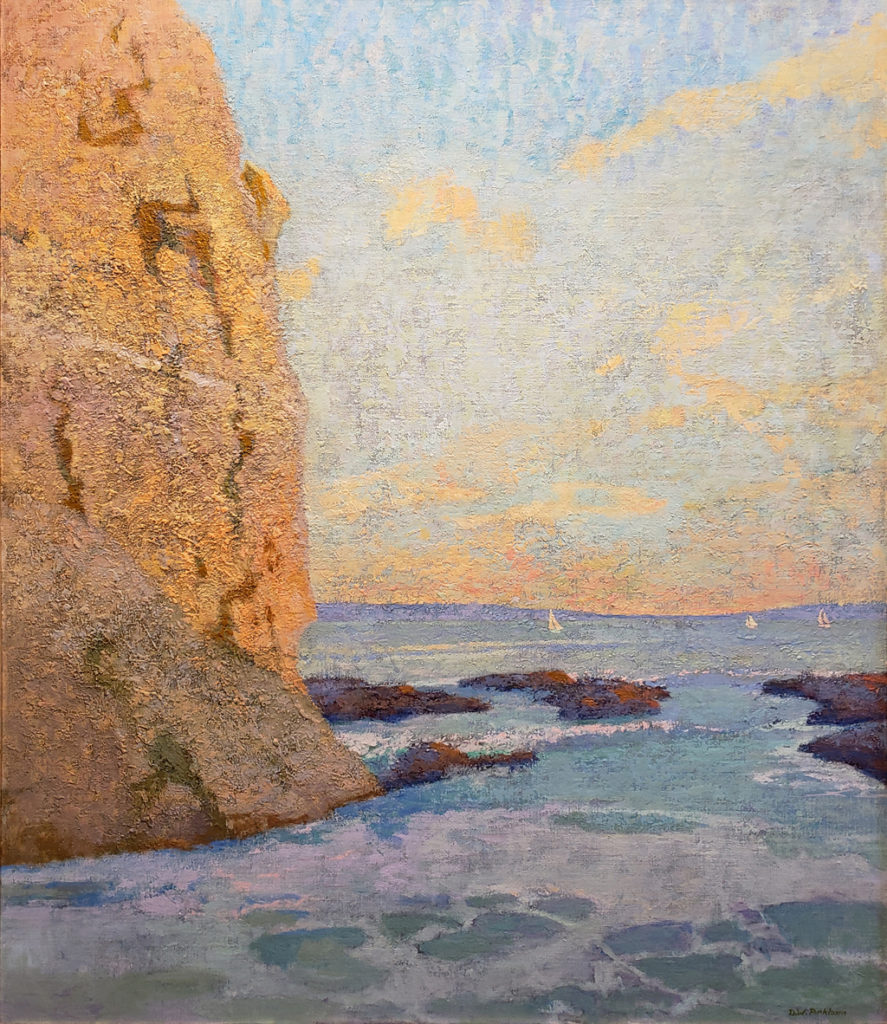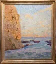 Taking time to contemplate and calm one's spirit is essential to our well-being, yet due to our generally hectic lives rarely do we have the chance. In this oil painting, Gentle Tide by Daniel W. Pinkham, the artist brings us the opportunity to stop and reflect. In his inimitable tonalist style, Pinkham graces our senses with a generous scene filled with natural beauty and inner peace.