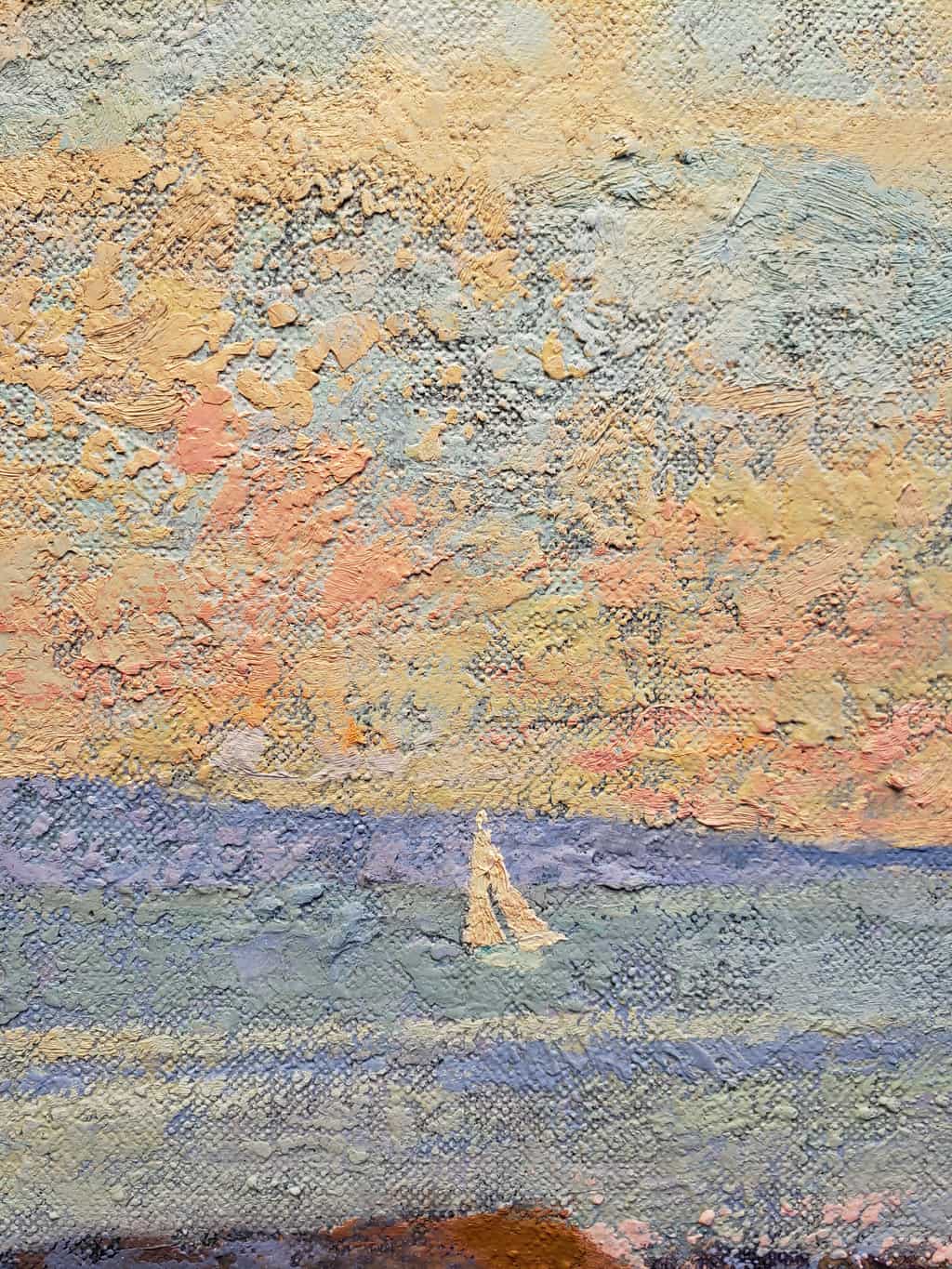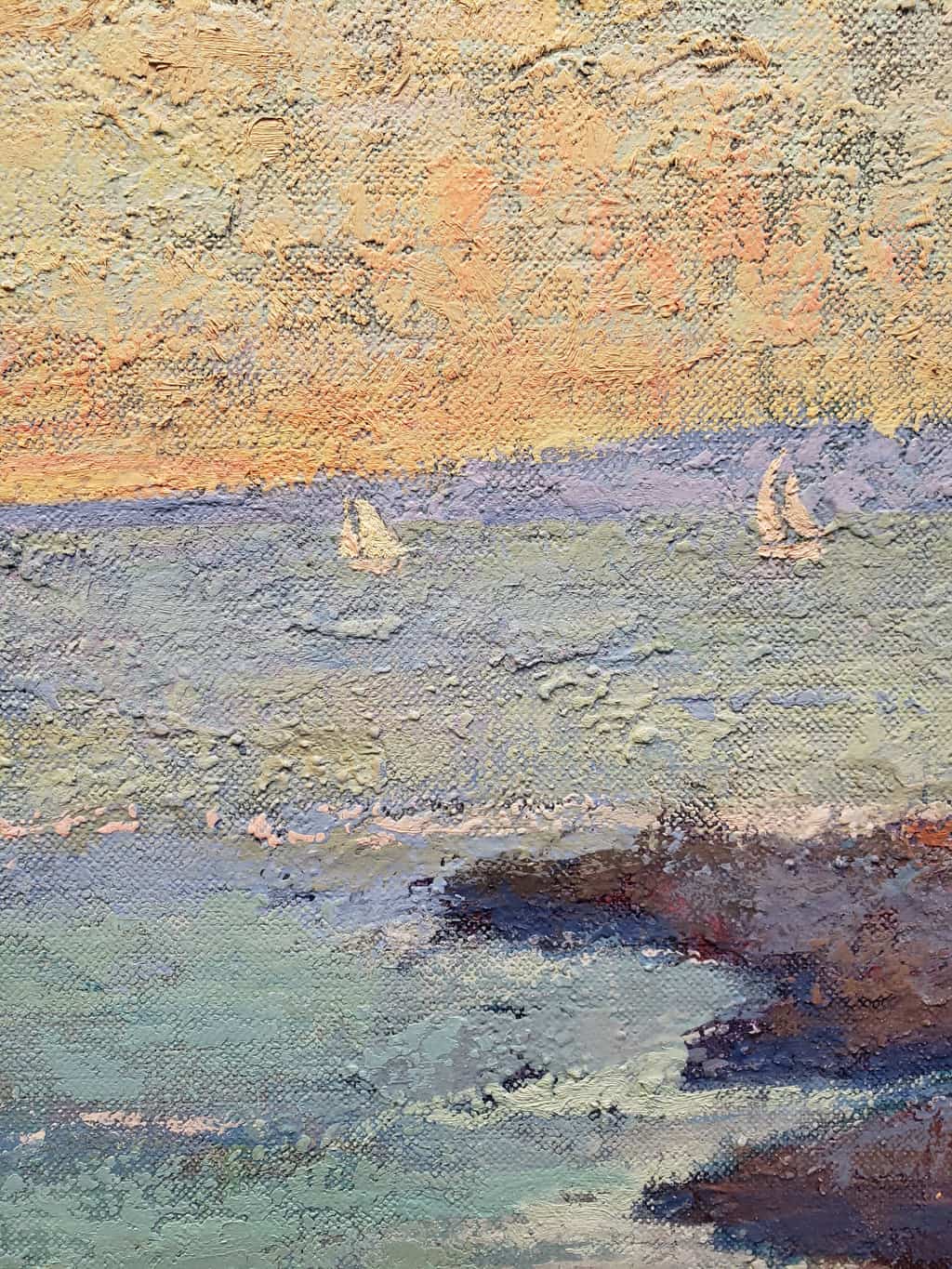 Artist Statement “Whenever I go across the street from my home and studio to Portuguese Point on weekdays, I am usually the only one out there. I appreciate the quiet and moment of solitude. I find it meditative to watch the waves flow in and out.”
