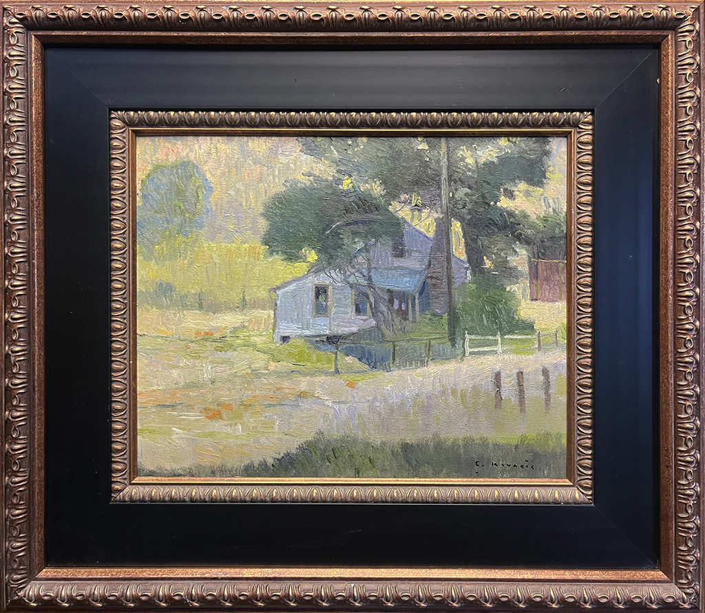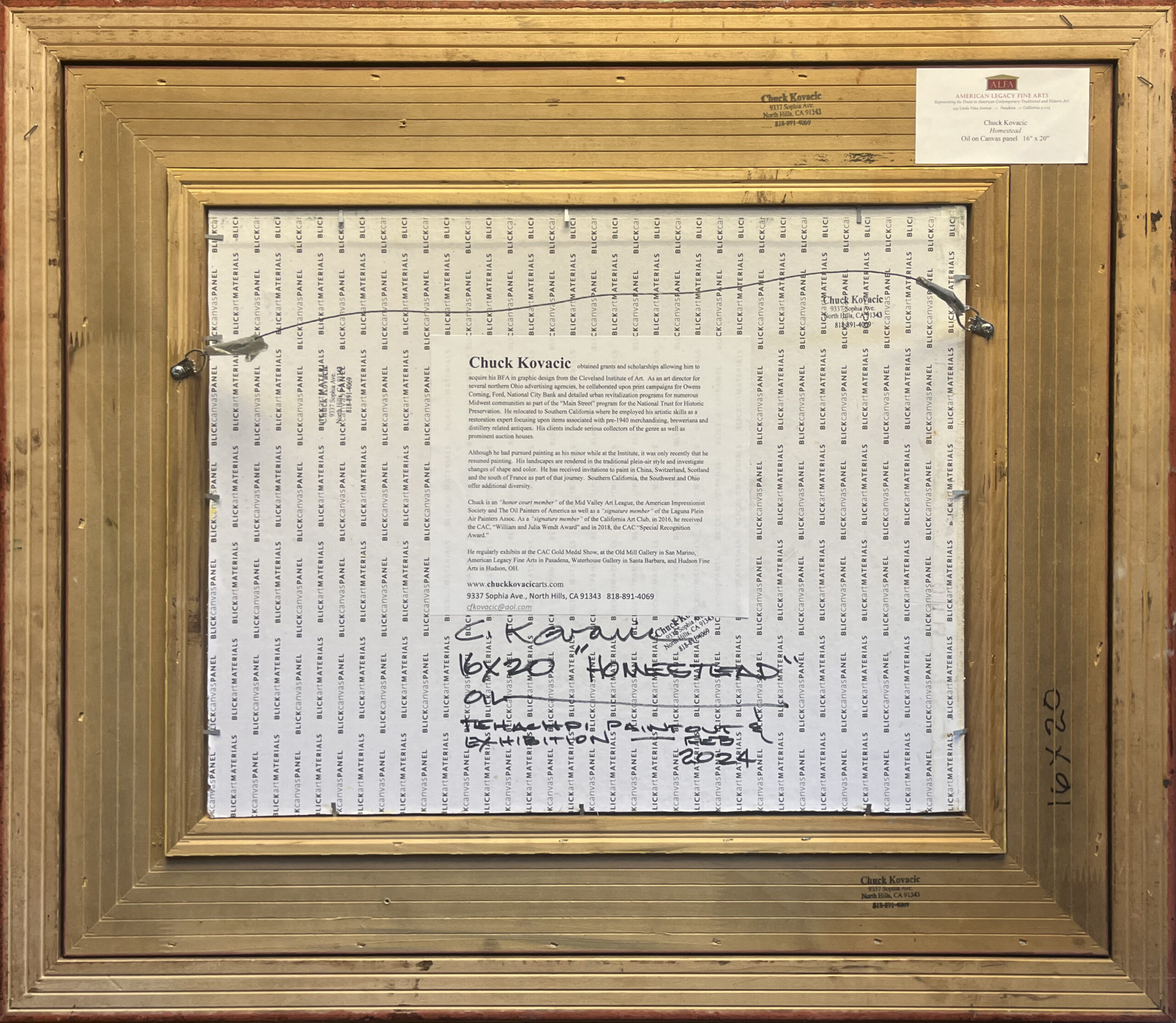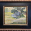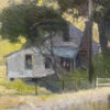 "Completed in the studio from plein air notes made in Tehachapi, CA. An abandoned homestead along nearby foothills. The structure represents current hardships blended with more pleasant memories."