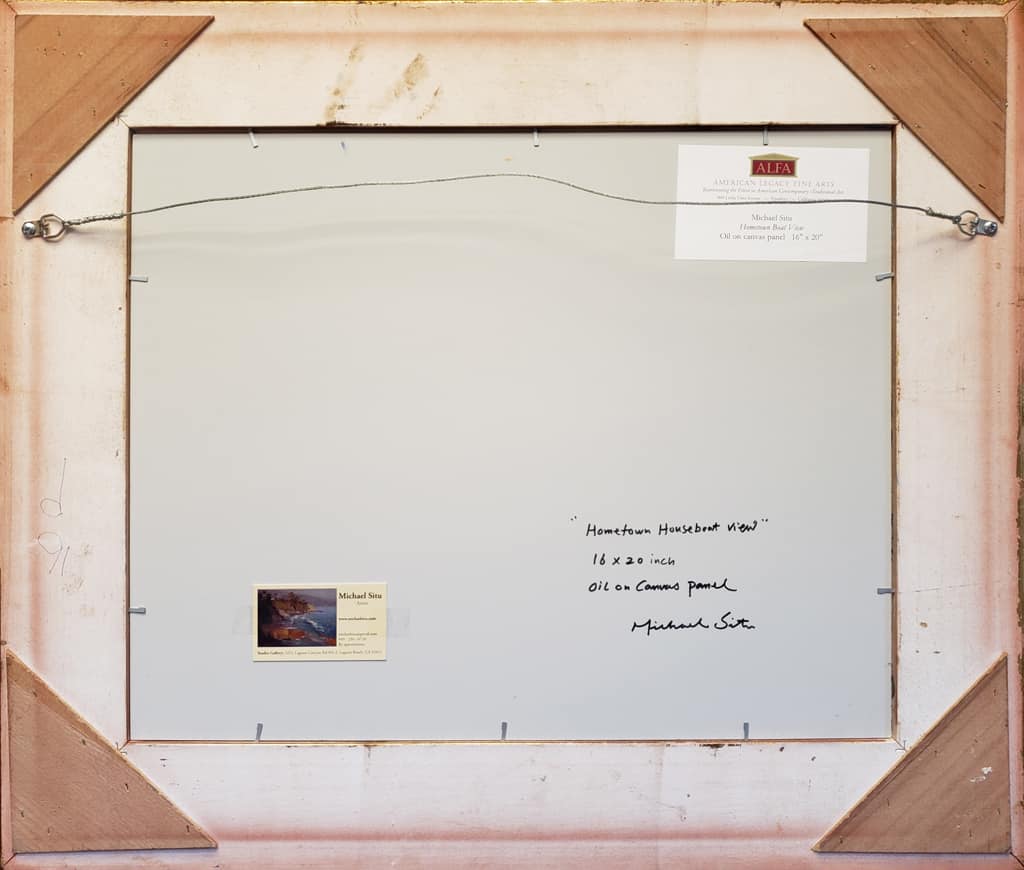 Michael Situ Archives Biography Press and Publications View in Room Sizing is approximate. See specs for exact dimensions. Twitter Email Michael SituHometown Boat ViewOil on canvas panel16" x 20", artwork22.66" x 27" x 1.5", framedContemporaryNot AvailableOut of stock Request More Information Provenance Acquired by American Legacy Fine Arts directly from the artist Exhibited China's Crown Jewel; Recent Paintings by American Artists, American Legacy Fine Arts, June 21 – July 28, 2019 Need help? Call our ALFA specialists +1 626.577.7733