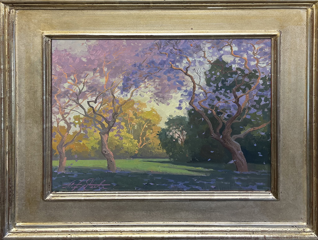 Alexey Steele Available Work Archives Biography Press and Publications Commissions View in Room Sizing is approximate. See specs for exact dimensions. Twitter Email Alexey SteeleJacaranda at El Marino Park, Culver CityOil on panel16" x 20", artwork23.5" x 27.5" x 1.75", framedContemporary$5,800 In stock Jacaranda at El Marino Park, Culver City quantity Purchase Now Request More Information Provenance Acquired by American Legacy Fine Arts directly from the artist Need help? Call our ALFA specialists +1 626.577.7733 Additional Available Artwork by Alexey Steele