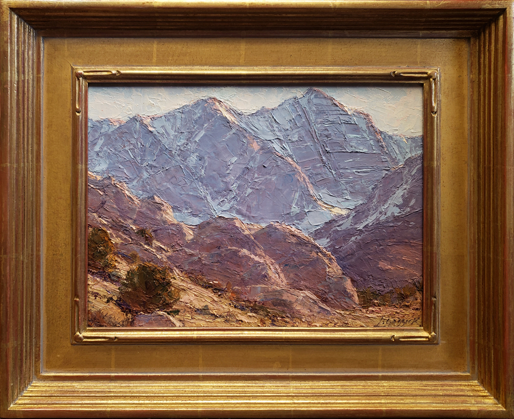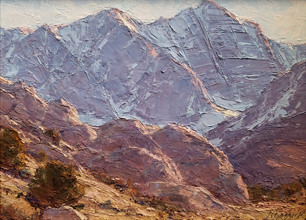 Jean LeGassick Available Work Archives Biography Press and Publications Commissions View in Room Sizing is approximate. See specs for exact dimensions. Twitter Email Jean LeGassickKiss of Light; Eastern Sierra NevadaOil on panel9" x 12", artwork13.875" x 16.875" x 1.25", framedContemporaryNot AvailableRequest More Information Provenance Acquired by American Legacy Fine Arts directly from the artist Exhibited California Art Club's 102nd Annual Gold Medal Exhibition, June 2-23, 2013 USC Fisher Museum of Art, Los Angeles, CA En Verso Began as a plein-air painting, finished in the studio. Buttermilk area west of Bishop, Eastern Sierra Nevada. Fall 2012 Need help? Call our ALFA specialists +1 626.577.7733 Available Artwork by Jean LeGassick