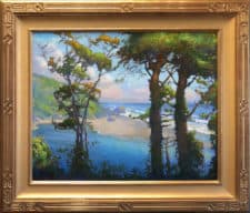 "Peter Adams found inspiration arriving at the mouth of the Klamath River, with its forests of giant coastal redwoods and pine, and stopped to paint this setting in his Klamath River Meets the Sea. Local Yurok Indians still fish here for delicious Chinook and king salmon, and steelhead trout, and it’s easy to imagine early explorers first coming upon this magical setting and the Pacific beyond."