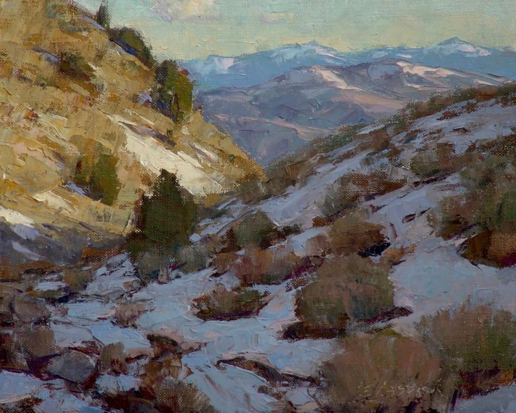 Jean LeGassick Archives Press and Publications Melting Snow; Hills Above Silver City, NevadaOil on panel8" x 10", artworkContemporaryNot AvailableRequest More Information Need help? Call our ALFA specialists +1 626.577.7733