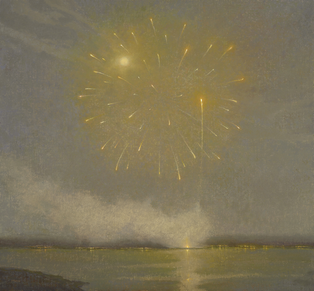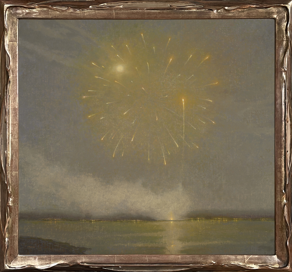"Fireworks, an aerial celebration of shimmering explosions that burst across the night sky. With each explosion, a magnificent display of shapes and lights appear at the pinnacle in a rainbow of colors, then fall and fade into darkness leaving behind a swirling cloud of smoke. I have found something ethereal and mysterious in them. Each one is unlike the next and their unique journey provides endless variations within this mystical and celebratory theme."