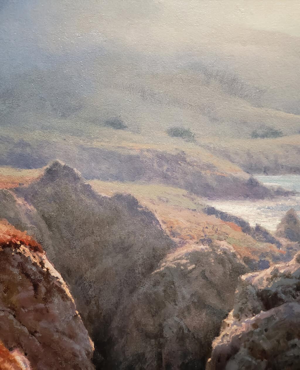 “There are moments when the heavens open up and illuminate the landscape as if the landscape itself is being showcased on a stage. These moments are often fleeting, and I do my best to take in the feeling and the experience so that I might be able to capture it on canvas. Morning Has Broken encompasses all that I love about the California coast.”
