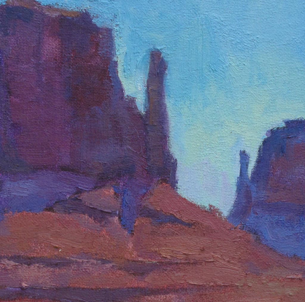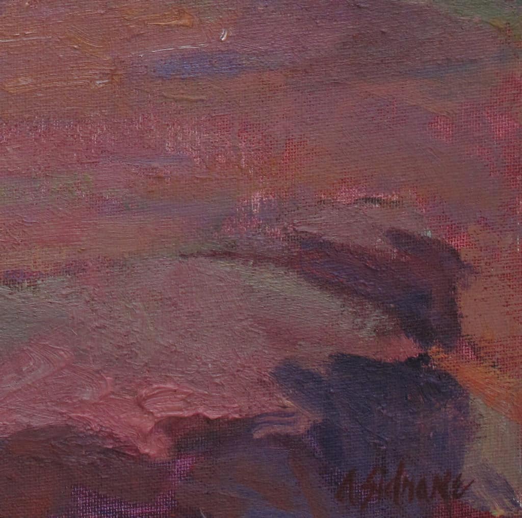 Amy Sidrane masterfully depicts a hillside during the break of dawn. As the sun shines upon the greenery, the hills begin to sing. The hilltops cast shadows, creating a mixture of light and dark hues.