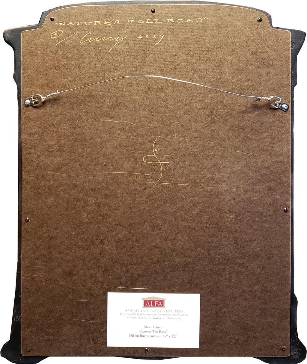Steve Curry Available Work Archives Biography Press and Publications View in Room Sizing is approximate. See specs for exact dimensions. Twitter Email Steve CurryNature’s Toll RoadOil on linen panel15" x 12", artwork20" x 17" x 1", framedContemporaryNot AvailableOut of stock Request More Information Provenance Acquired by American Legacy Fine Arts directly from the artist Artist Statement "Painted in part on location at the Ojai River Bottom Preserve and completed with some additional detail in the studio." —Steve Curry Exhibited Fleeting Moments 2nd Biennale: Works en Plein Air, American Legacy Fine Arts, November 22 – December 15, 2019 Need help? Call our ALFA specialists +1 626.577.7733 Available Artwork by Steve Curry