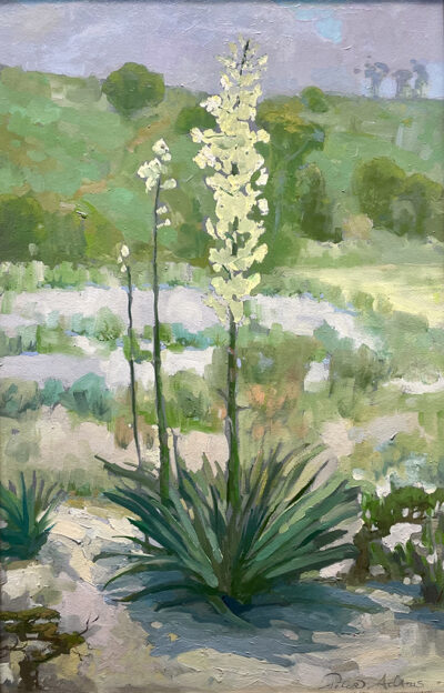 "Painting Our Lord’s Candle en plein air was a meditative experience, allowing me to immerse myself in the ever-changing light and quiet majesty of the San Gabriel Mountains. This area of the Arroyo Seco, close to my home and studio in Pasadena, has long been a source of inspiration—a place where nature’s beauty and spiritual energy intertwine. The yucca plant, commonly known as Our Lord’s Candle, stands resilient against the rugged terrain, its luminous blossoms reaching toward the sky. To me, it symbolizes strength, renewal, and a connection to something greater than ourselves. Capturing the play of light on its delicate petals and the surrounding landscape was not only an artistic challenge but also a reflection of my ongoing exploration of light as a metaphor for the inner spirit. Through this painting, I hope to share a moment of stillness and reverence—an invitation to pause, observe, and appreciate the quiet grace that nature so freely offers."