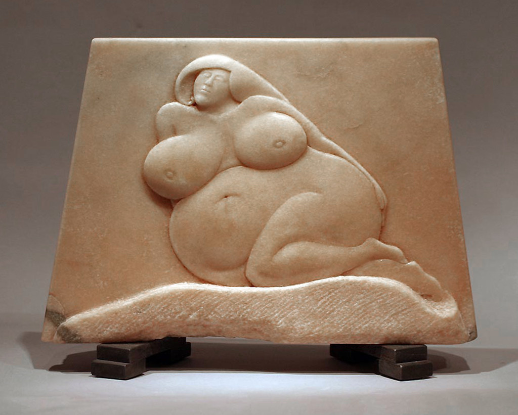Description Created as a unique, one-of-a-kind work of art, the artist used the traditional marble-cutting tools of hammer and chisel to develop this free-form bas-relief sculpture. The classical concept of the ideal female form is made contemporary with Bácsi's play on the word "pear" to emphasize the subject's shapein the title, "Pear-fect." The work has the timeless appeal of time-honored skills, yet provides a playful wit.