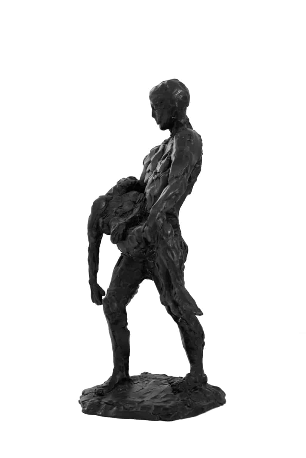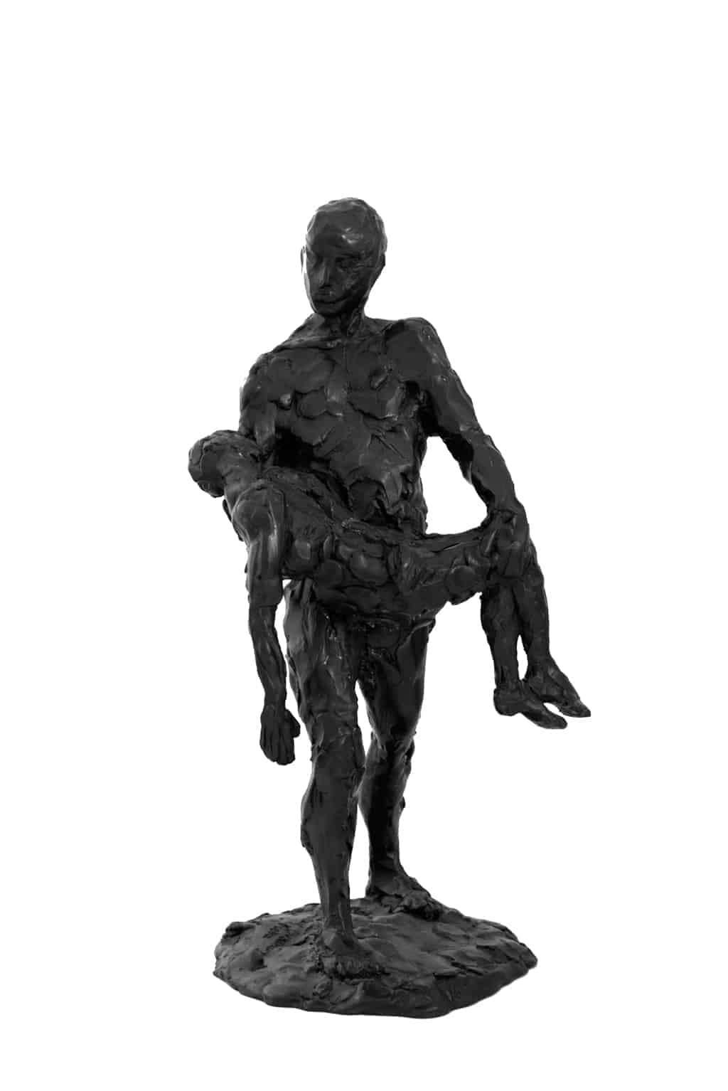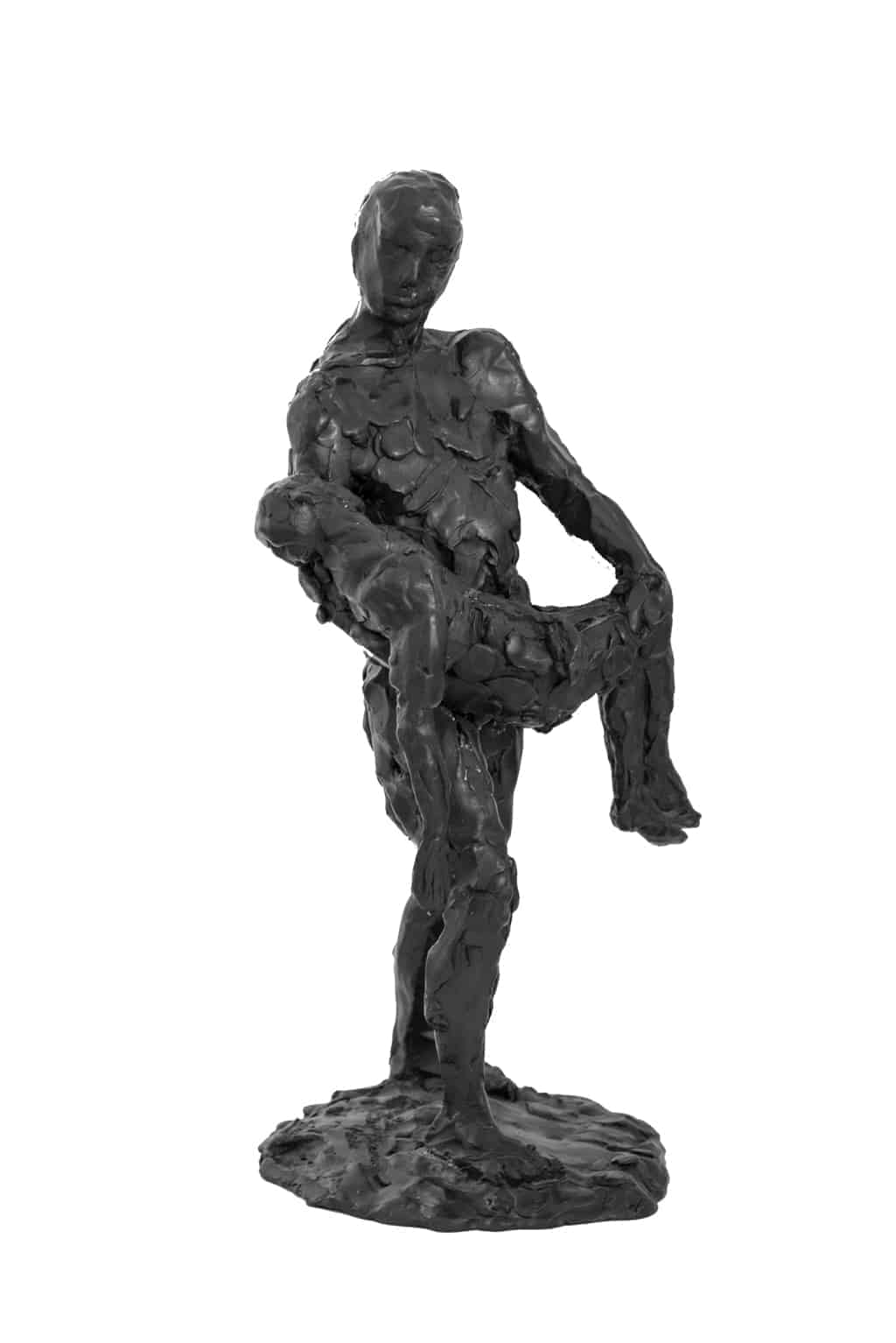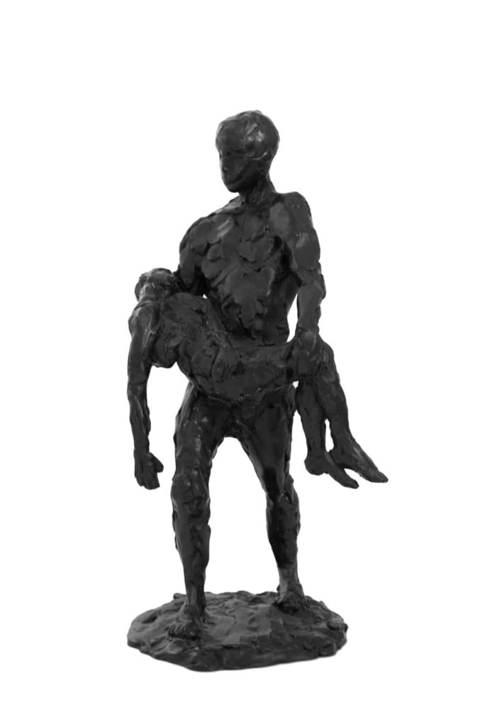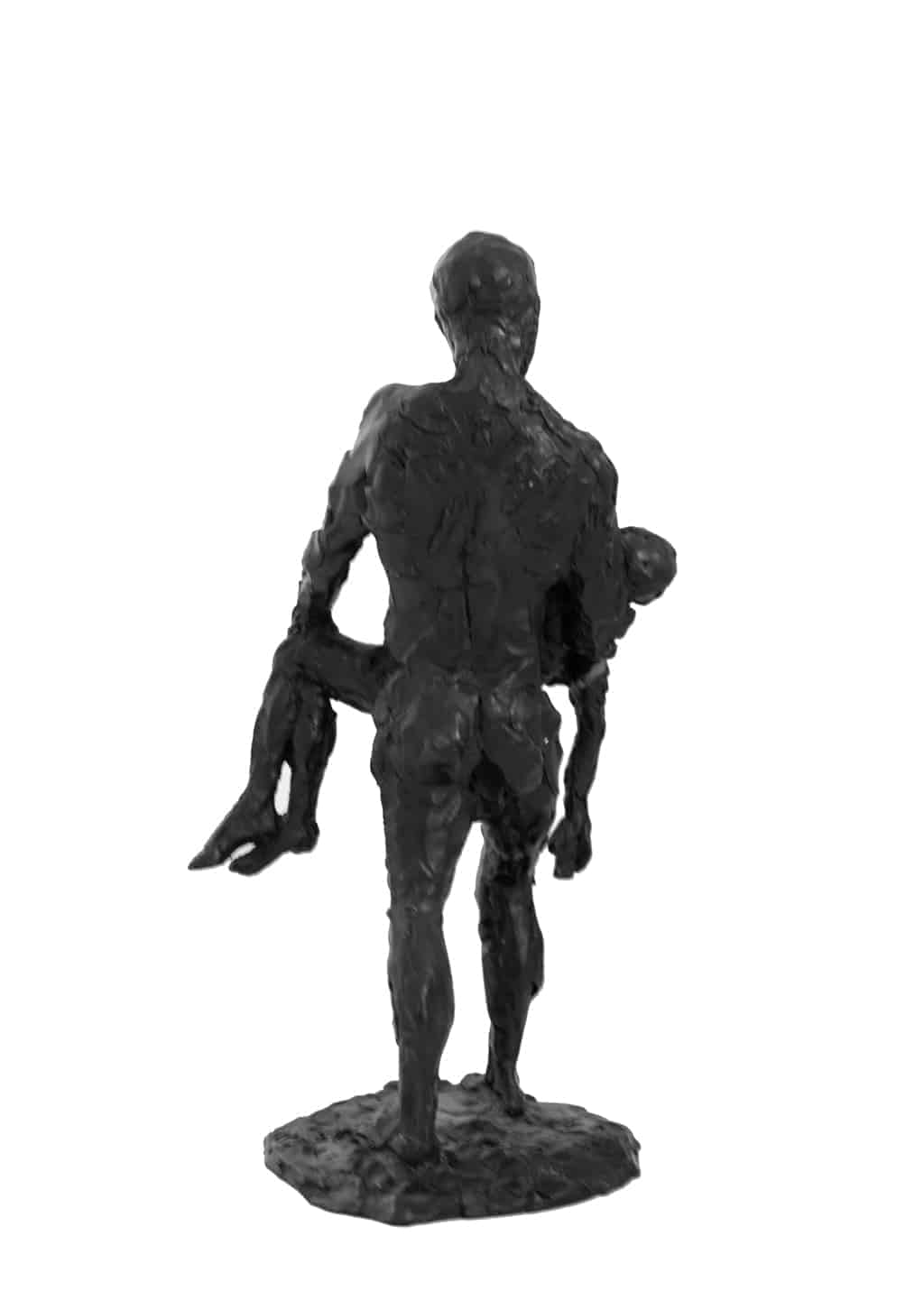 Description This sculpture depicts a moment in the life of Ray Bradbury, a writer and close friend to Slatoff. This maquette displays a loving father carry his thirteen year old son home after enjoying a day at the circus. However, the father cannot carry his son for much longer; rather, this maquette showcases the final day of childhood and the entrance to adulthood.