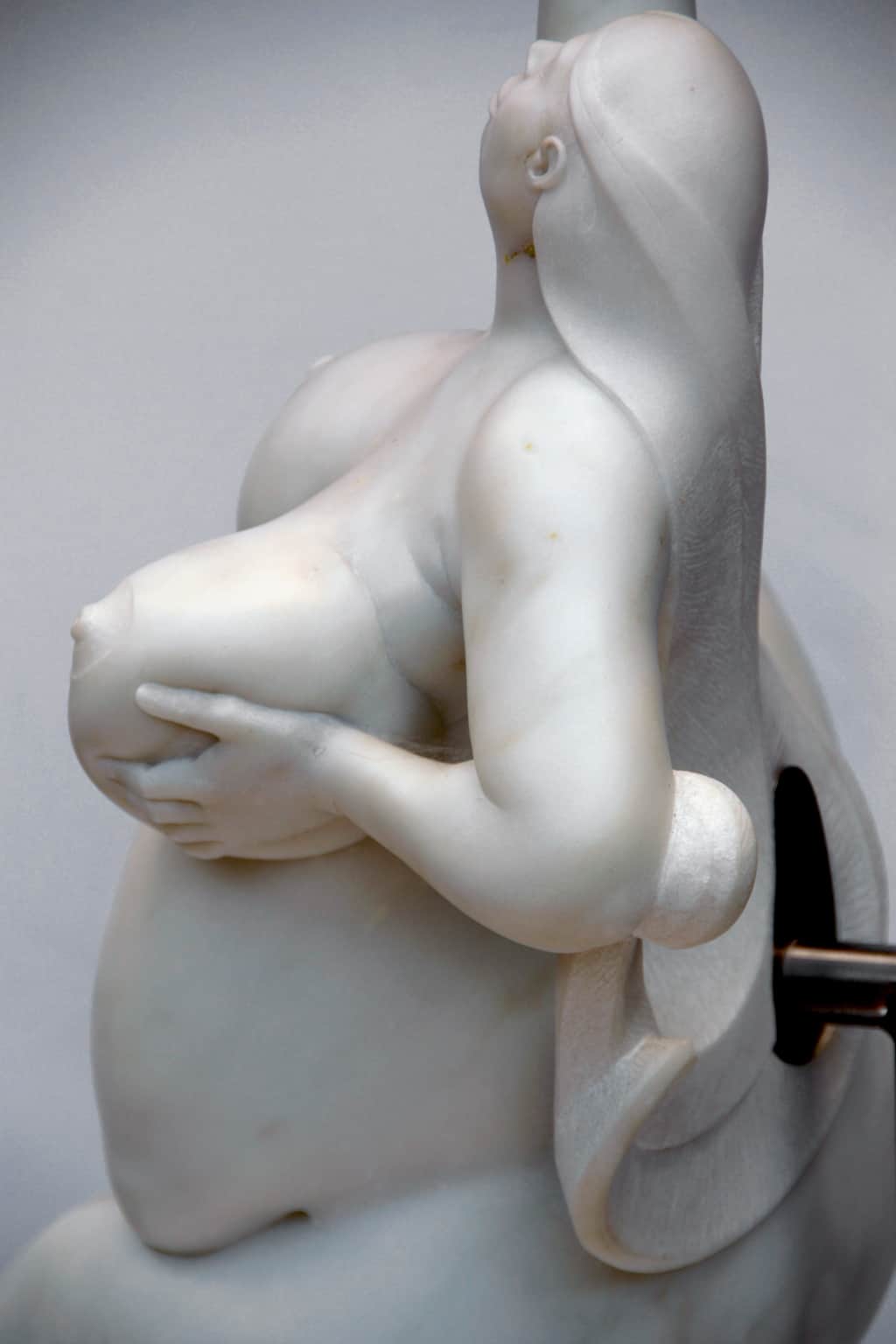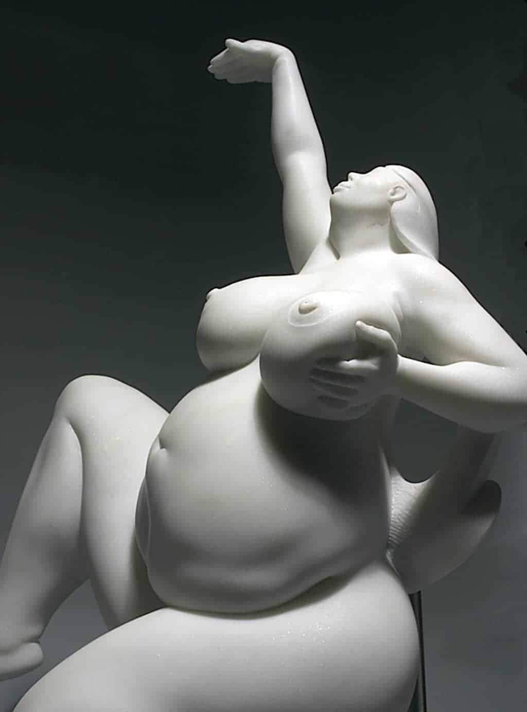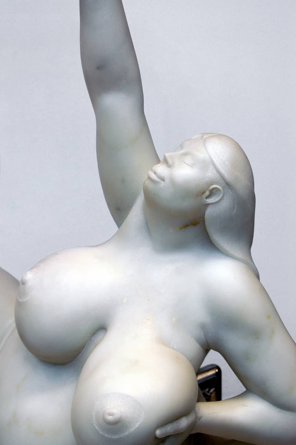 Bácsi captures a sense of free spirit in the female form. This uniquely composed sculpture, hand-carved in Italian marble, accentuates the model’s voluptuousness and joyous attitude.