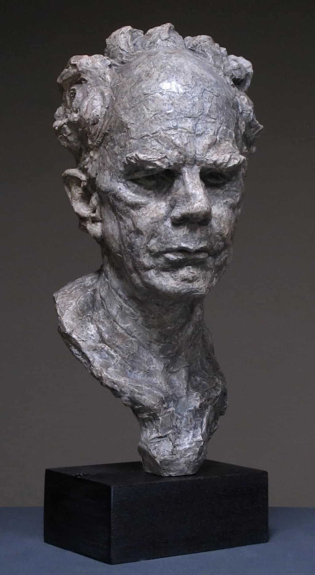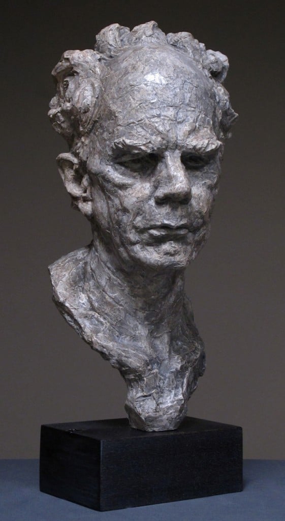 “When developing a figure composition, I'll often work with models to help me visualize the piece, posing them and studying the shapes that their body will create. Through the model, I'll also study the expressive qualities of the piece and how to communicate them to the viewer. It's a cooperative aspect of the mostly solitary work that I do, and an aspect I enjoy. Portrait Study I: Mr. Koch is a portrait and expression study for a 2- figure composition that involves two male figures engaged in an argument. A life-size portrait study of the model gives me the opportunity to learn how the forms their face responds to their moods, to learn their likeness and persona. The model, Mr. Terry Koch, posed for the more aggressive of the two figures. I asked him to portray a man that is stern, dogmatic. The studies will often evolve into independent pieces that are exhibited and collected separately; but at the same time they support the narrative of the larger composition.”