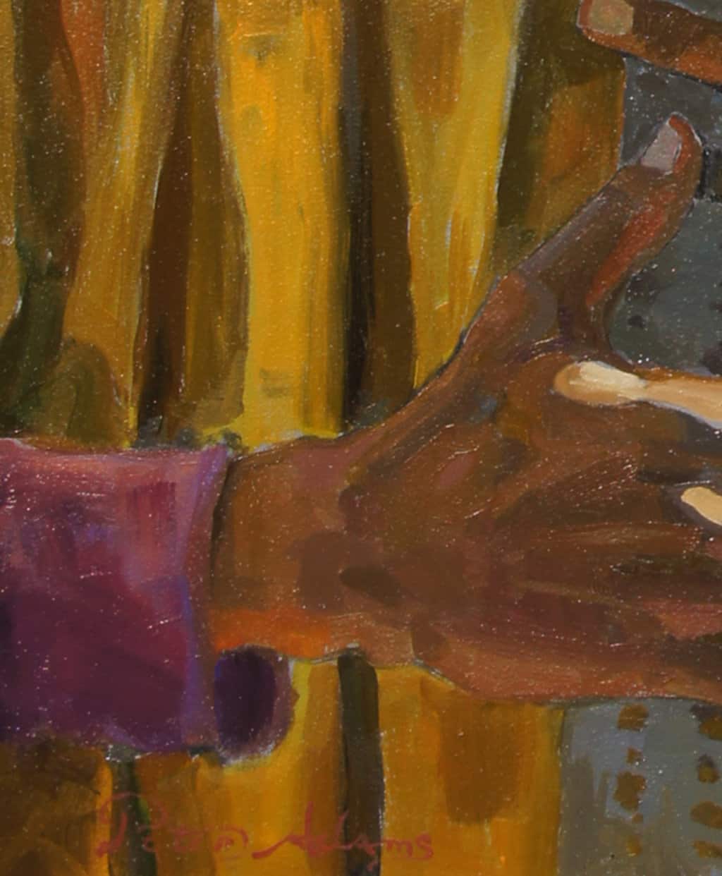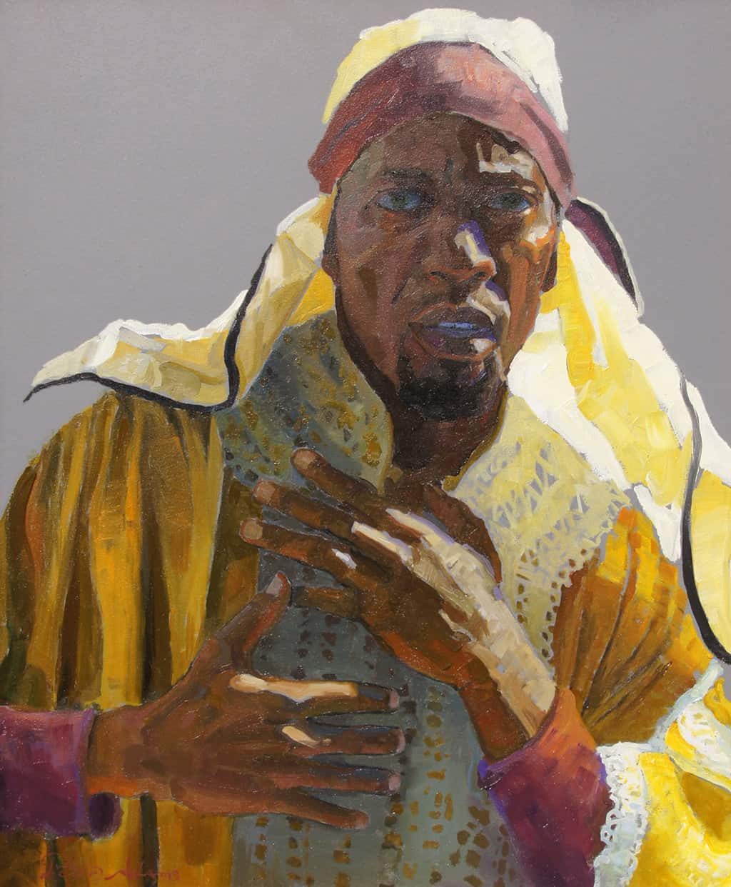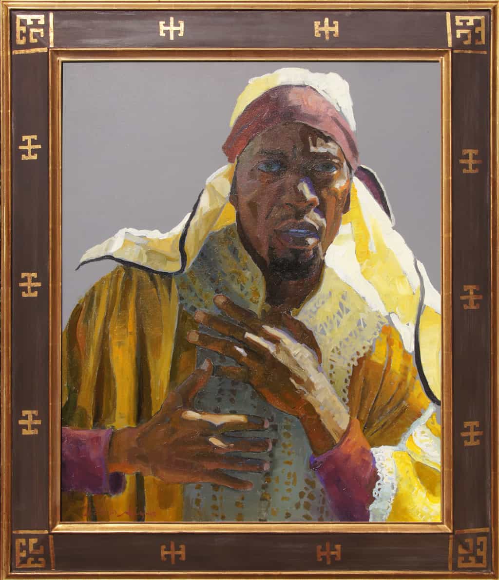 "This model is named Quante. I portrayed him in many of the crowd scenes in the 14 Stations of the Cross. His natural expressions of grief and horror inspired me in many of the compositions."