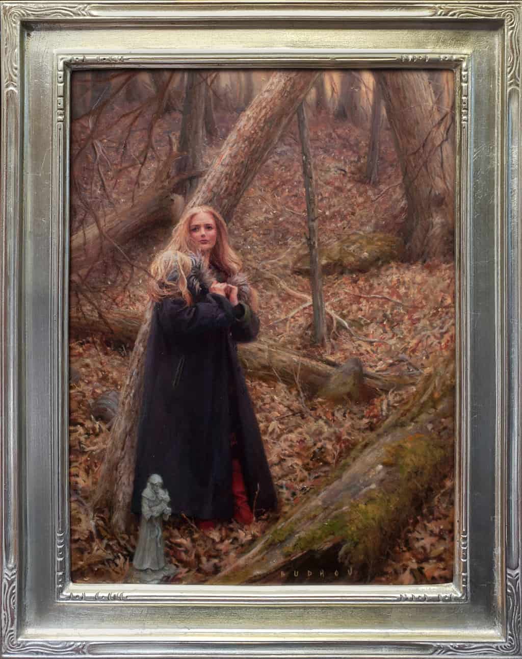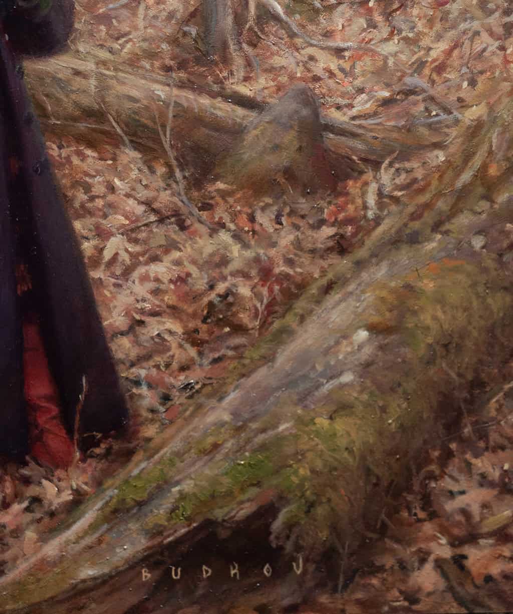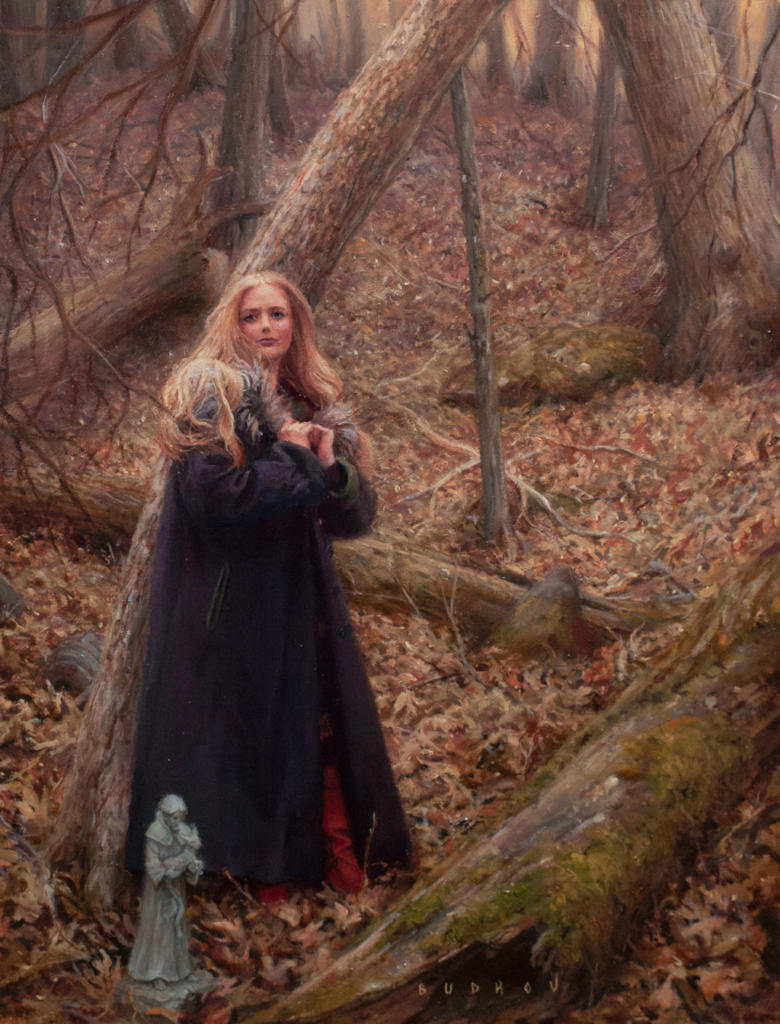 Nikita Budkov Available Work Archives Biography Press and Publications Commissions View in Room Sizing is approximate. See specs for exact dimensions. Watch Video Twitter Email Nikita BudkovRevelationsOil on panel16" x 12", artwork19.375" x 15.375" x 1.25", framedContemporaryNot AvailableOut of stock Request More Information Provenance Acquired by American Legacy Fine Arts directly from the artist Artist Statement ”Of a young woman, seemingly lost in a cold, mysterious forest a few hours before the first snow on a December day." —Nikita Budkov Exhibited Artist's Choice, American Legacy Fine Arts, Pasadena, California, November 18 – December 17, 2022 Need help? Call our ALFA specialists +1 626.577.7733 Available Artwork by Nikita Budkov